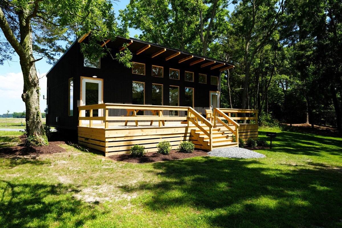Denne fantastiske hytte ved siden af en dam ligger gemt væk i skoven på en historisk gård på den østlige kyst kun 10 minutter fra Cape Charles. Den klassiske, men moderne hytte er en drømmerejse eller et fjernarbejdsområde. Vågn op til fuglene, der synger i træerne, der omgiver hytten, og nyd terrassen - se hjortene og gederne fouraje. Tag en tur på vores stier, indsaml friske æg, besøg Cape Charles for restauranter og shopping, og nyd gårdens bålplads om aftenen.