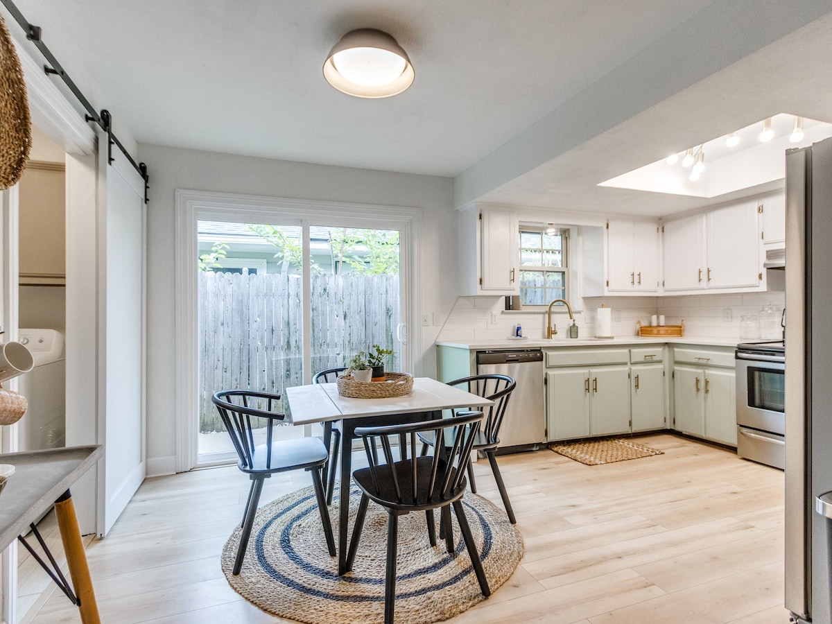 Velkommen til vores hus på 5th street! Beliggende i et historisk kvarter i Edmond bygget i 1950'erne, men fuldt renoveret og kun få skridt fra alt, hvad du har brug for. Gå til FIFTH ved Stephenson Park-området (2 min gang) for at finde pizza, caféer, kaffe, ramen, shopping og is, Downtown Edmond (10 min gang), UCO (5-10 min gang). Der er mange restauranter, barer, købmand (Sprouts), shopping i centrum (med en 1 til 10 min gåtur) og TO parker. Lad os være dit hjem væk fra hjemmet!
