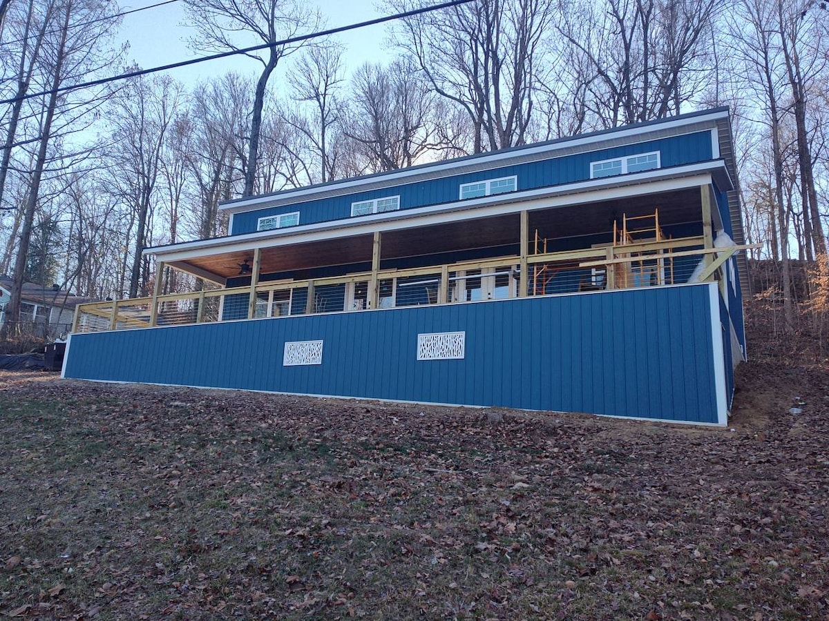 3 soveværelser, 3,5 badeværelser på Nolin Lake. 8 miles fra Mammoth Cave hovedindgang. Majestætisk, specialbygget hjem ved vandet med utrolig udsigt over søen og solnedgangen og bålplads. Der er plads til 11 personer. Bemærk, at vi er på en klippe og ikke har direkte adgang til søen fra ejendommen. Master suite med queensize-seng på hovedniveau. Den nederste etage har to enkeltsenge med en ekstra seng og en sovesofa. Øverste etage har to soveværelser med dobbeltsenge. Komplet badeværelse på alle tre etager. Vaskemaskine og tørretumbler i fuld størrelse