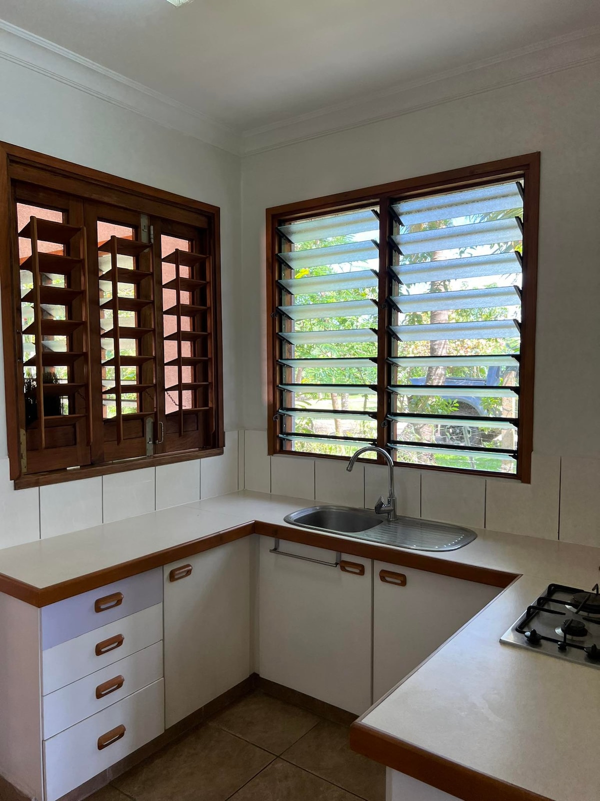 Jeg udlejer en stor, selvstændig lejlighed med ét soveværelse og egen, sikker indgang og alle bekvemmeligheder, herunder tv, aircondition, loftventilatorer, hurtigt Starlink-internet, swimmingpool og et stort udendørsområde. Denne lejlighed, der har en kingsize-dobbeltseng eller to enkeltsenge, hvis det ønskes, ligger kun 5-10 minutters gang fra centrum af Port Vila. Ejendommen omfatter Airbnb-lejligheden og en bolig med to soveværelser og ligger 100 meter fra en travl vej, butikker og et busstoppested.