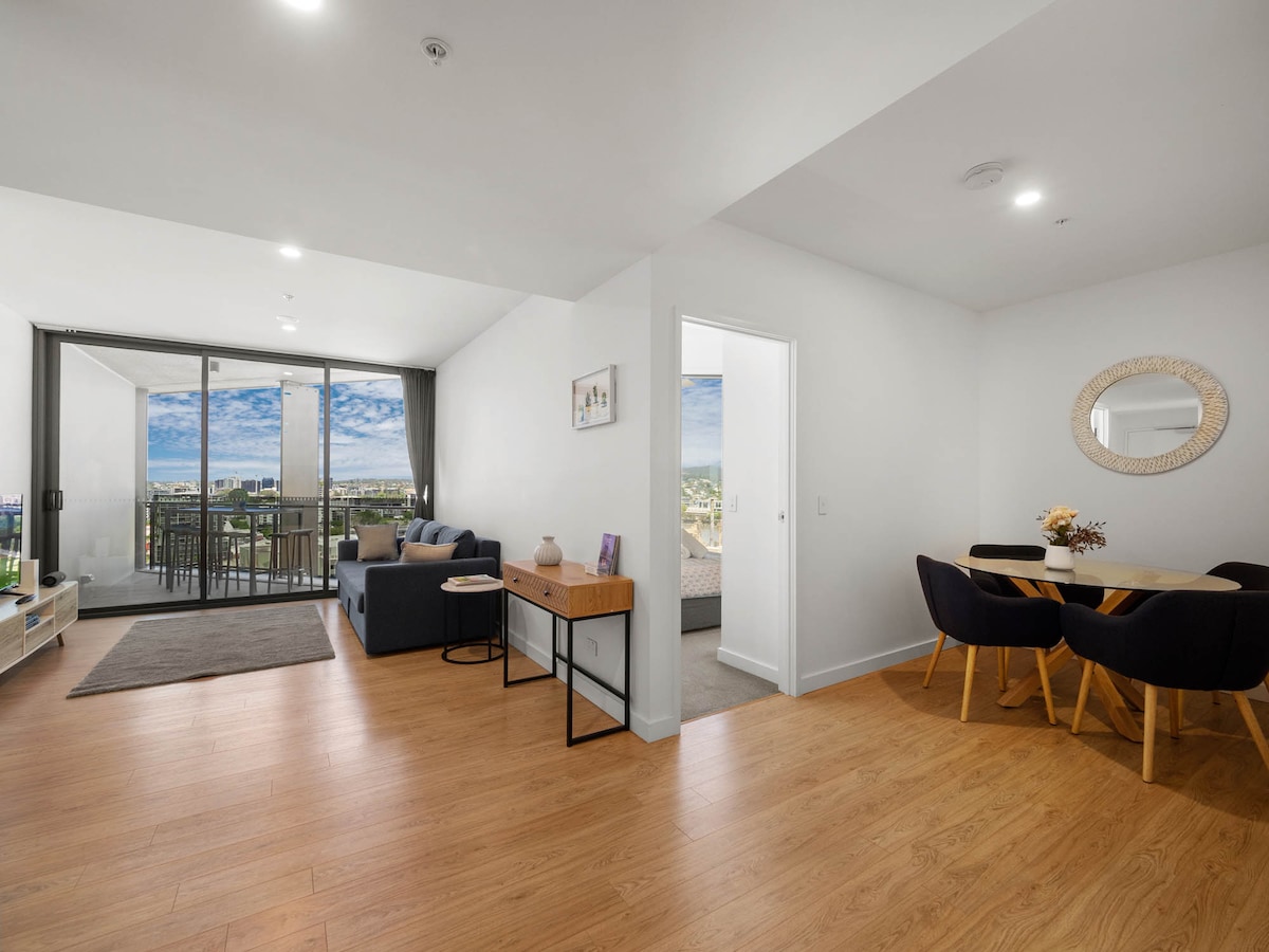 Solrig lejlighed nær Gabba med tagterrasse og udsigt over byen