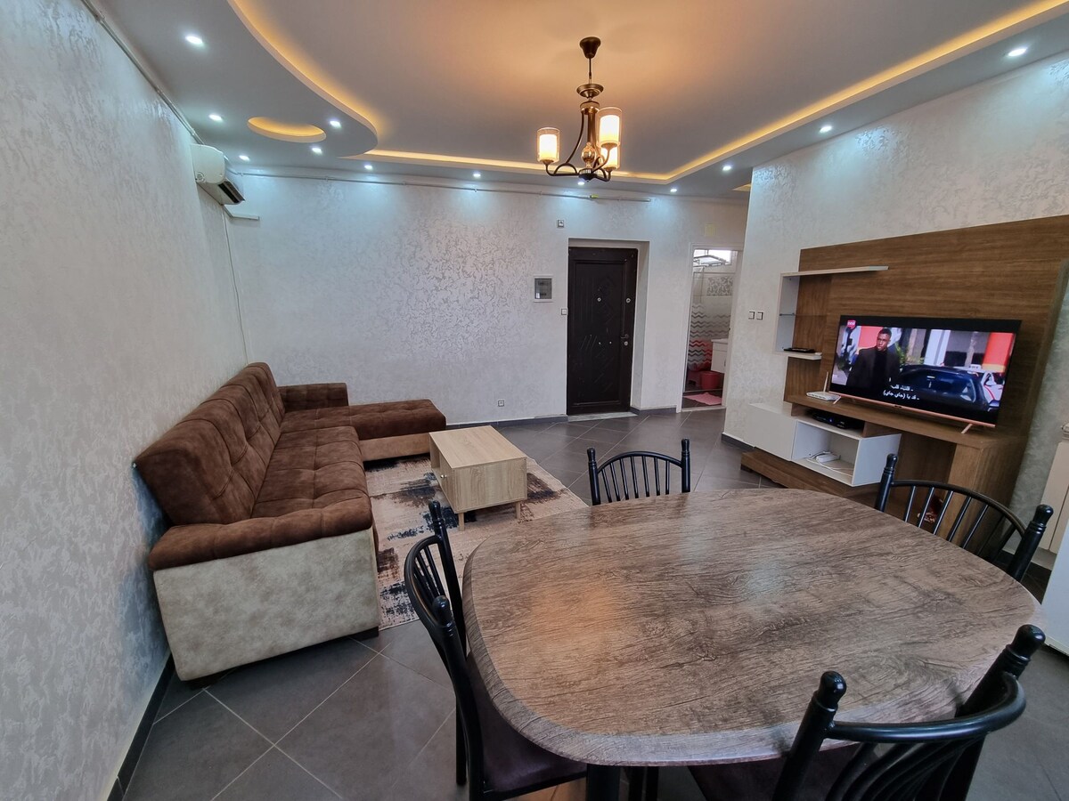 Velkommen til Jijel! Vores nye lejlighed med aircondition er perfekt til ferier eller forretningsophold. Fuldt udstyret, det giver varmt og koldt vand 24 timer i døgnet, 7 dage/uge. Beliggende 800 m fra Corniche og 400 m fra Zouai Beach. Tæt på restauranter, supermarkeder, apotek og busstoppesteder. Det omfatter sikker parkering. Nyd en stille gade og hyggelige nætter!