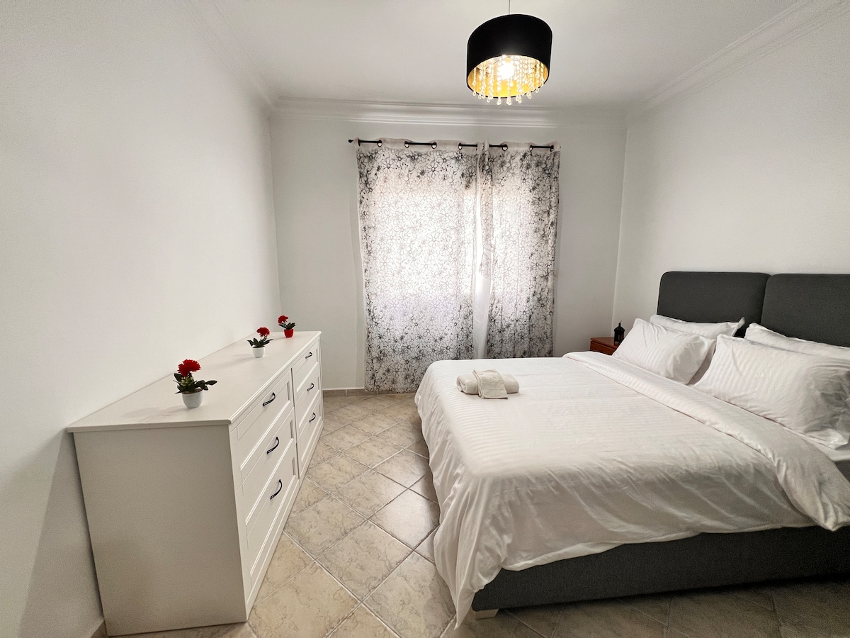 Brand New Apt in the heart of the city in a secure - calm residence with large shared swimming pool for kids & adults. • Smart-TV with all the Apps needed ( Wi-Fi ) available. • Ideal Place close to all amenities • Private underground parking. • 5 min Drive to the Beach.🏝️ [ We make sure to give you the best costumer service, and make you feel home ]