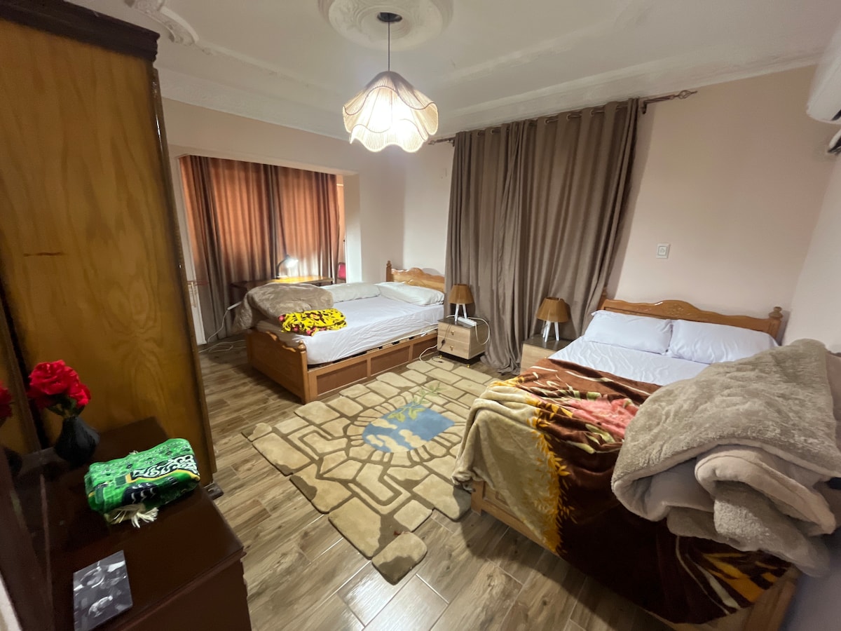 A two-room apartment fully air-conditioned with three TVs, bathroom, and kitchen located in a privileged location in Mokattam next to the supermarket (Carrefour) in Mokattam, where it overlooks old Cairo and is very close to Cairo Castle and is 8 km from the city center and the Egyptian Museum. Valid for 4 persons (every 2 in a room) and has one bathroom, an equipped kitchen, and a reception hall