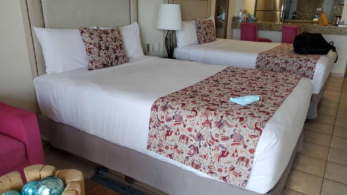 Når du booker din ferie i Pueblo Bonito Rosé, får du ikke kun et smukt overnatningssted, men en ferieoplevelse med flere boliger med fremragende service og faciliteter, sjove aktiviteter og lækre spisesteder. Juniorsuiten er en overdimensioneret studiolejlighed på mere end 540 kvadratfod indendørs/udendørs område og har et komfortabelt opholdsområde med bord og stole, to dobbeltsenge eller en kingsize-dobbeltseng, et fuldt udstyret tekøkken med service til fire og et stort badeværelse med bruser.