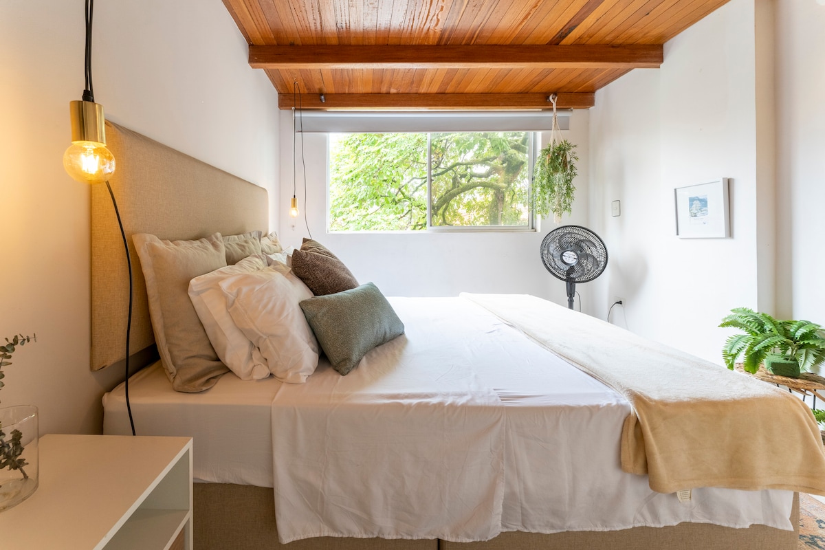 Bo komfortabelt og privat i dette hyggelige værelse med privat badeværelse, dobbeltseng og ultrahurtig 900 Mbps WiFi – perfekt til at arbejde hjemmefra eller slappe af som par efter en dag på opdagelse. Beliggende i Manila, El Poblado, Medellíns mest livlige kvarter, er du få skridt fra hyggelige caféer, top-restauranter og natteliv i Provenza & Parque Lleras. Kun 5 minutters gang til Poblado Metro Station, hvorfra du nemt kan komme rundt i byen.