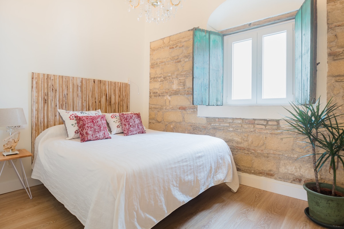 Nyd enkelheden og elegancen i denne rolige og centralt beliggende bolig. Lejligheden ligger i stueetagen i vores gæstehus, har direkte adgang fra terrassen og har to store vinduer, hvilket gør den meget lys hele året. Det er et mini-loft med et minikøkken, en opholdsstue og et soveværelse, alt sammen i ét. Den har skabe, TV, privat badeværelse, Wi-Fi og selvfølgelig, hvis du ønsker det, kan du bruge terrassen i vores hus. Der er ingen daglig rengøring.