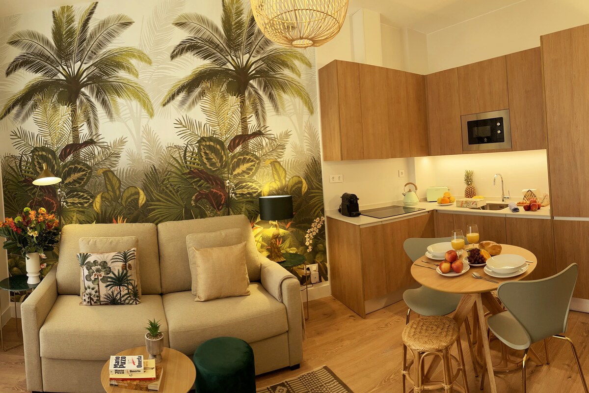 Luksuriøs lejlighed med fritstående badekar midt i Madrid (det historiske centrum), 5 minutter fra La Latina og 8 minutter fra Plaza Mayor. Queensize-seng med sengetøj i egyptisk bomuld med 300 tråde, højhastigheds-Wi-Fi, smart-tv, fuldt udstyret køkken, Nespresso, aircondition, smartlås, sikkerhed og indtjekning døgnet rundt. Gå til El Rastro, Madrid Rio og Museo Reina Sofia. Perfekt til romantiske udflugter, turisme eller fjernarbejde. Book nu, og oplev Madrid i en luksuslejlighed med et unikt design i vores by.