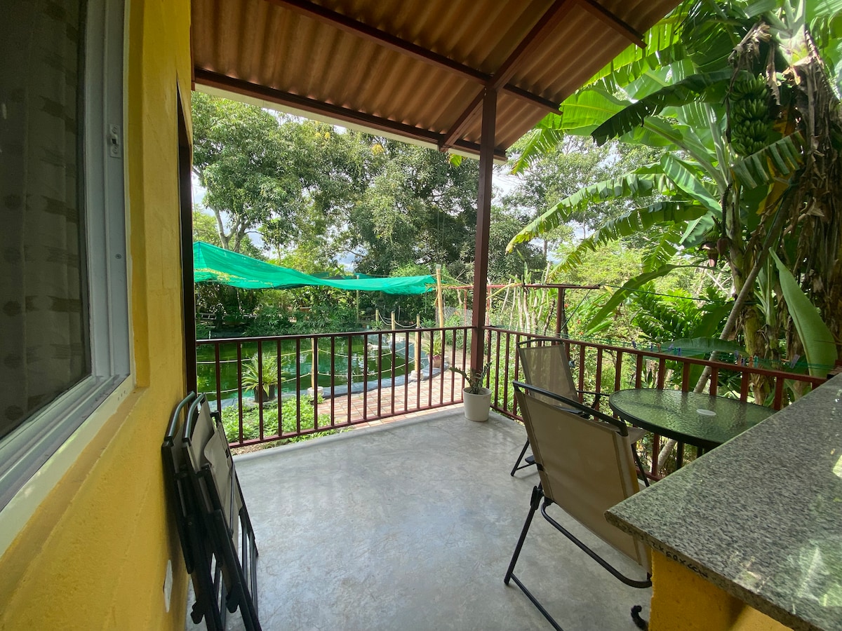 Oplev Rancho Ahome, et fredfyldt gæstehus med 2 soveværelser og 1 badeværelse i Rio Hato. Flygt til roen, 5 minutter fra fantastiske strande, og nyd vores private pool med et vandfald. Fordyb dig i naturen på vores bæredygtige gård, hvor der er frugt, kaniner og kyllinger. Rancho Ahome er perfekt til dem, der søger fred og et miljøvenligt fristed, og tilbyder en blanding af komfort og eventyr midt i betagende landskaber. Oplev et fredfyldt fristed, der er tæt på naturen, men alligevel fyldt med komfort. Vi er kæledyrsvenlige.