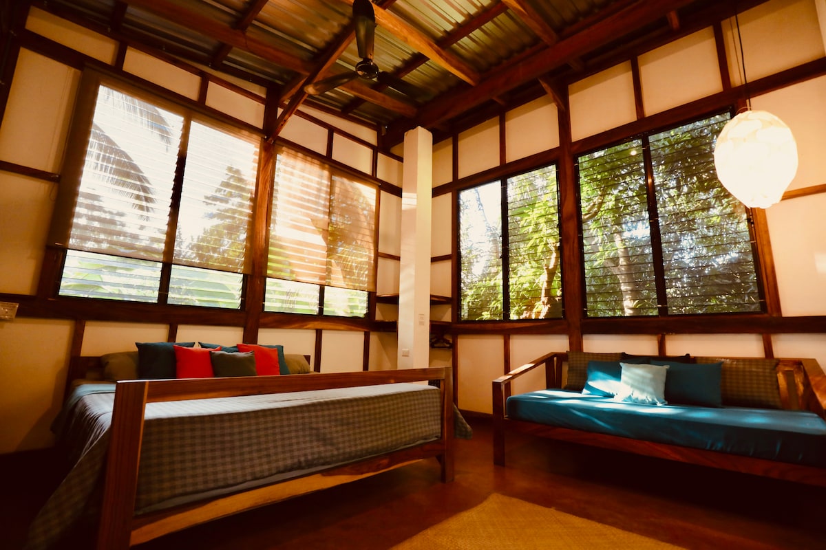 Oplev vores traditionelle Re-Imagine Villa i salvadoransk stil, der ligger i et privat nabolag, i gåafstand til El Palmarcitos strand og saltvandspools. Perfekt til naturelskere, væk fra støj, men tæt på Surf Citys hovedattraktioner. Med et enkelt charmerende semi-åbent design blander dette kystnære tilflugtssted indendørs komfort med naturens beroligende tilstedeværelse. Perfekt til par, familier, venner, surfture eller fjernarbejde. Det er en autentisk kulturel oplevelse med en afslappet atmosfære.
