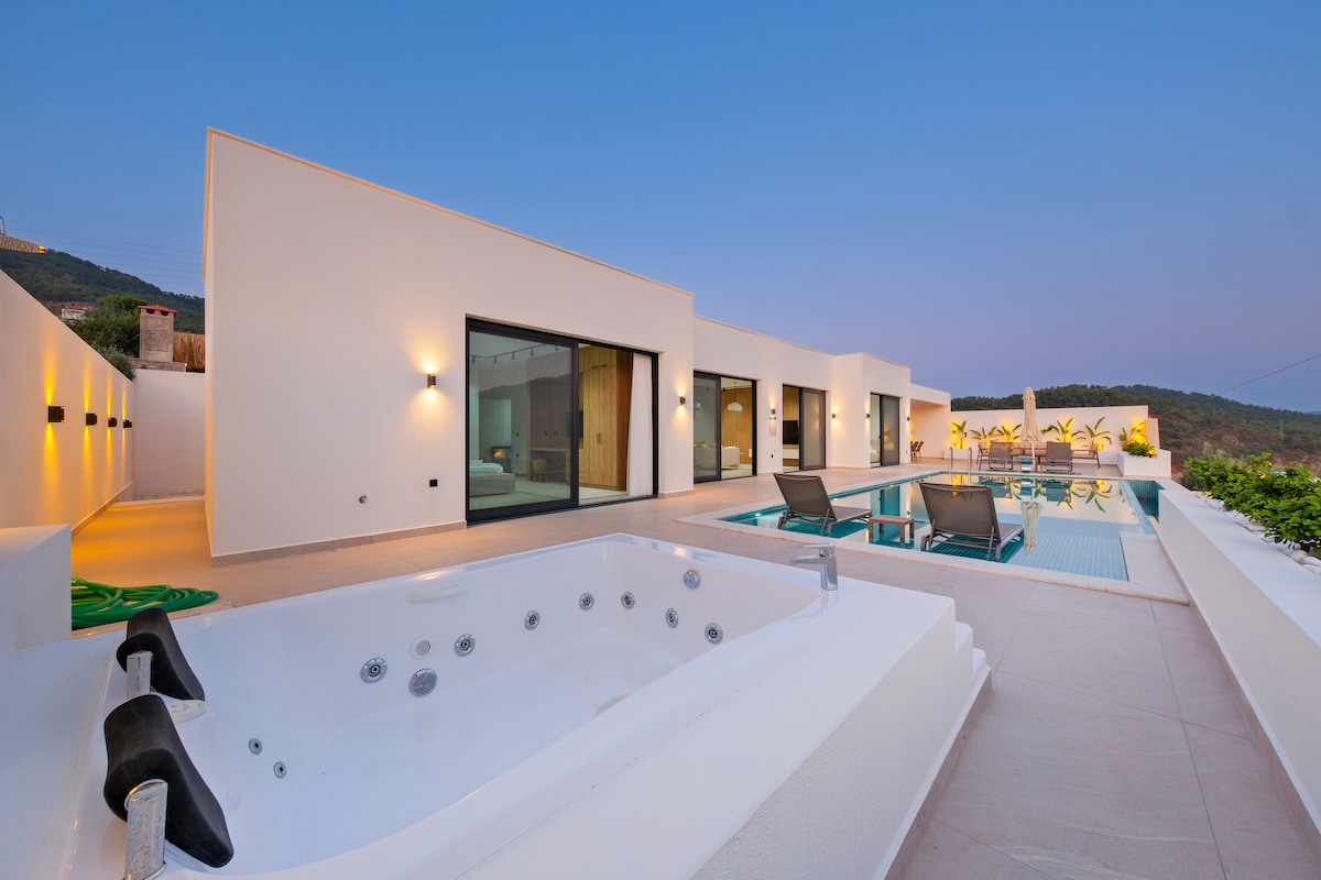 Villa WHITESIDE, der ligger i Esenköy, Fethiye, med sit luksuriøse og moderne design og en beskyttet privat swimmingpool, giver en uforglemmelig feriemulighed for sine fremtidige gæster. Vores hus, der har en kapacitet på 6 personer, har også 3 soveværelser, 3 WC-badeværelser. Det gør det ideelt til store familier og venner. Sauna og boblebad til rådighed. VORES VILLA HAR OGSÅ GULVVARME.