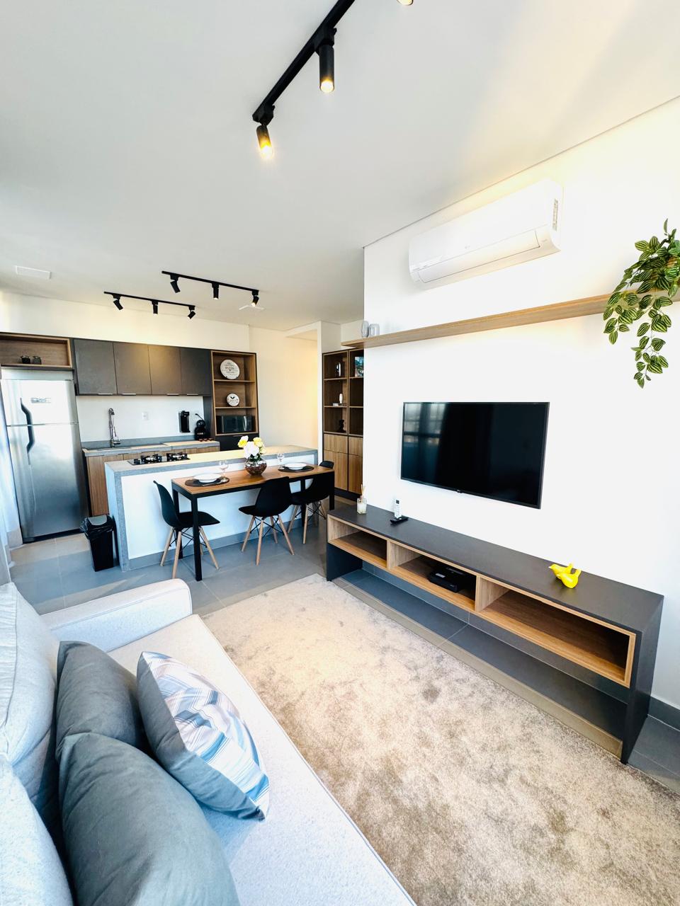 Apê moderno com ar-condicionado, varanda, cozinha completa e decoração de design. A 10 min do Cambuí, 15 min do Aeroporto de Viracopos, 6 min da Rodoviária e 5 min do Campinas Shopping. A uma quadra da Av. Amoreiras e do Parque Villa Garden, com supermercados, Oba, McDonald's, padarias, BRT, restaurantes e muito mais ao redor. Prédio com piscina, academia, rooftop, mini mercado 24h e academia Panobianco. Perto de tudo!