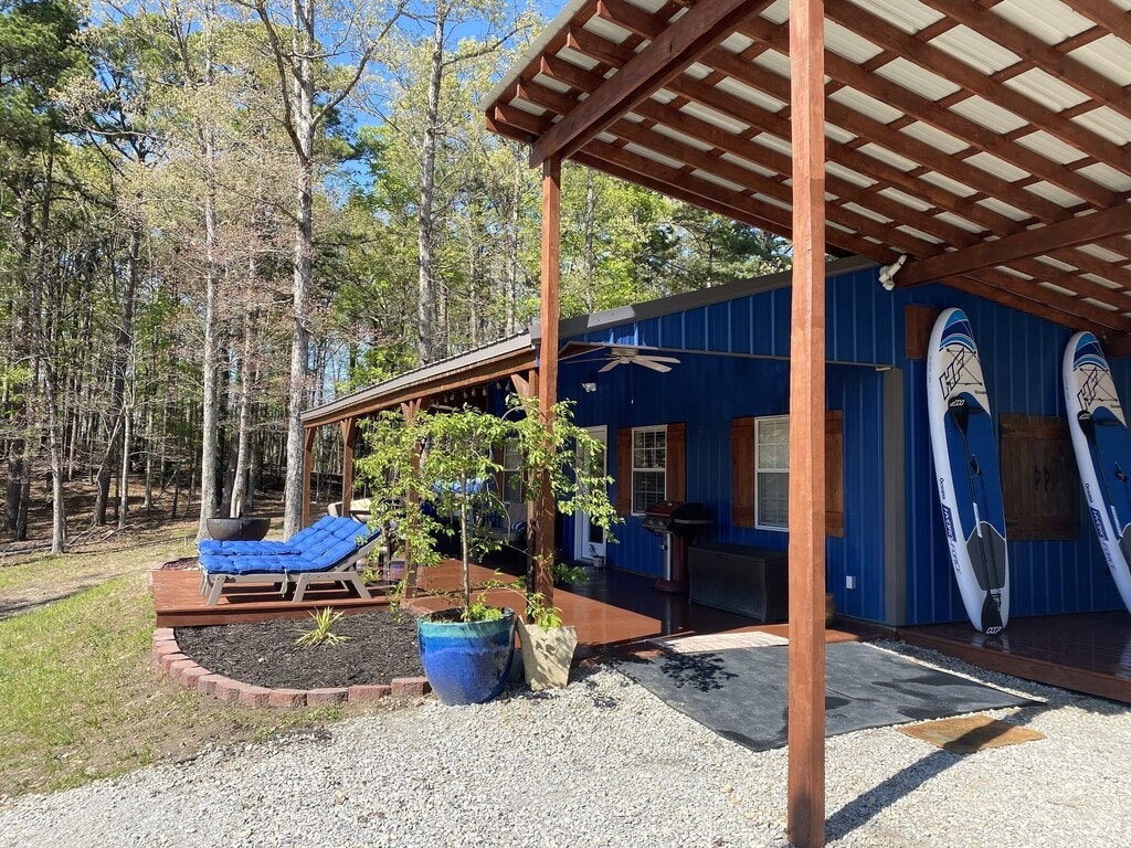 Come enjoy summer deep in the Ozarks at our remote modern cabin on Norfork Lake. Set on 60 gated lakefront acres with only two other rental cabins (both also owned by us), it offers rare privacy and a peaceful, natural setting. The cabin features a beautiful modern interior designed for comfort. 12 ft walls and 8 foot windows open up to some of the best views on the lake. Guests have direct lake access through a quiet cove with private lakeside decks, something extremely rare on Norfork Lake.