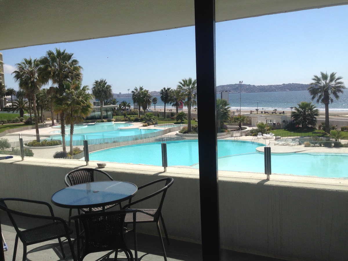 Hermoso departamento frontal primera línea, de la terraza una vista a toda la Avenida del Mar y la playa. Piso 7, Estacionamiento, 2d 2b y 1 futón. Piso flotante nuevo, cocina americana, TV, Wi Fi, Juegos de Mesa para jugar en familia y una linda hamaca en terraza. Equipamiento Edificio: Gimnasio, cancha de tenis, sala de pool, piscina, sauna, quincho, conserje 24/7, juegos para niño, áreas verdes, sala de eventos. Las camas cuentan con sábanas y cobertor. se dejan 2 toallas