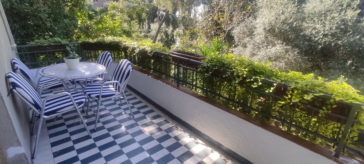 Huset består af 3 etager, stueetagen er besat af ejerne og de øverste 2 er dem, der tilbydes. De er helt afsides og har en separat indgang fra gaden og en stor solrig terrasse til lejere. Klimaanlæg (koldt/varme) i alle rum. To komplette badeværelser (suite og generelt). Spisestue med tekøkken. Suite med badeværelse og omklædningsrum. Værelse med to køjer. Stue med tv, lænestole og sovesofa.