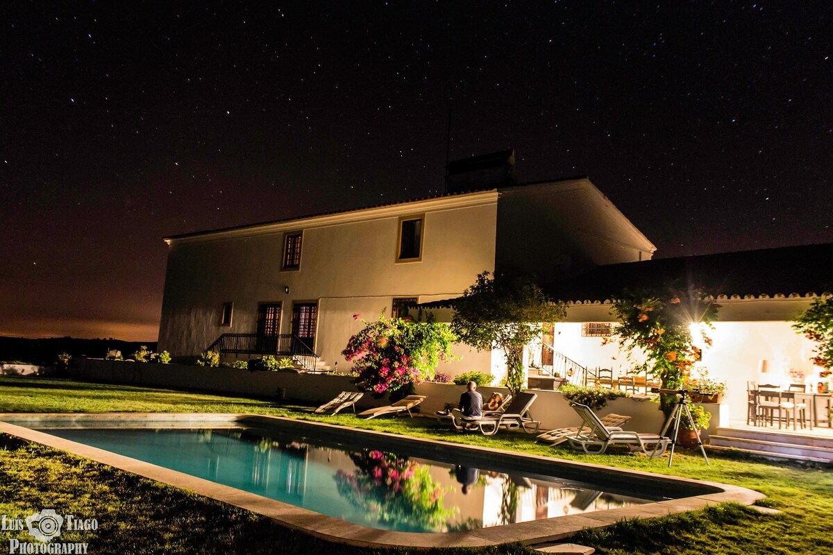 Ombygget Shepherds Cottage i traditionel Cork Forest, med 2 soveværelser, 2 badeværelser, stue, køkken og privat terrasse og en familie fælles swimmingpool er tilgængelig. Beliggende i smukke landskaber med korkstræer, olivenlunde og vinmarker, ved foden af Serra D' Ossa 20 km syd for Estremoz. Ideel til sightseeing i en naturskøn og historisk del af Portugal og inden for rækkevidde med motorvej Lissabon (2 timer) og Spanien (1 time). Der er et utal af aktiviteter at nyde på gården. For vandrere eller mountainbikere er der kilometervis af stier omkring den 540 hektar store gård, som du kan udforske, og for dem, der ønsker at vove sig længere væk, tilbyder de nærliggende toppe uovertruffen udsigt over det omkringliggende landskab. Serra d'Ossa ligger 500 meter over havets overflade og kan prale af et af de tørreste klimaer i Europa. Fraværet af lysforurening gør dette til et astronomparadis. Twitchers kan nyde at finde ud af over 70 fuglearter i det unikke habitat, der leveres af korkskoven, flere af vores tidligere gæster er medlemmer af RSPB og har lavet lister over de fugle, de har set/hørt. Her er en liste over et par stykker: White Stork, Booted Eagle, Red Kite, Kestrel, Cuckoo, Tawny Owl, Hoopoe, Red-Rumped Swallow, Great Bustard, Little Bustard and Bee Eater. Besøgende på den lokale pande omfatter sorte fløjede stylter og lejlighedsvis avocet. Meget lejlighedsvis kan man se bustards på de nederste sletter. Inden for en times kørsel fra gården kan du også udforske nærliggende byer, herunder Evora (et UNESCO-verdensarvssted), Estremoz, der er berømt for sit lørdag morgenmarked, Vila Viçosa med sine to kongelige paladser, Reguengos og endda det nærliggende Spanien. Historiske ture i Evora kan også arrangeres via en privat guide. Vingårde : Selvom den overvejende er en kuperet korkskov , er der for nylig blevet plantet i en åben dal, der producerer Alicante Bouschet, Aragonêz, Touriga Nactional og Syrah kvalitetsdruer. De fleste af druerne sælges, men et udvalg af de bedste kvalitetsdruer bevares til produktion af en rødvin af høj kvalitet, der sælges i Portugal under Cem Reis-mærket, og i Holland under navnet Het Tientje. Denne vin er blevet tildelt sølvmedaljer i Wine Masters Challenge (Portugal), Mundus Vini (Tyskland) og Challenge Du Vin (Frankrig). Næste år produceres der også en hvidvin fra viognier druer. Vores vin og nogle produkter kan købes på stedet.
