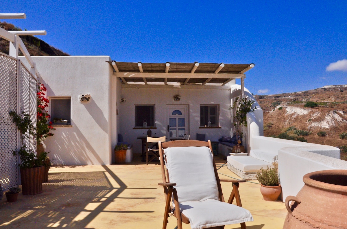 A cozy studio in the grounds of a family home on the outskirts of the traditional village of Emporio. Ideal for solo travelers & couples. Perissa & Perivolos black sandy beaches are 5 min drive away or 20 min walk. Fully furnished apartment with private parking. The property is fully solar powered. Relax around the heated pool within our home. Guests are welcome in all outside areas of the property.