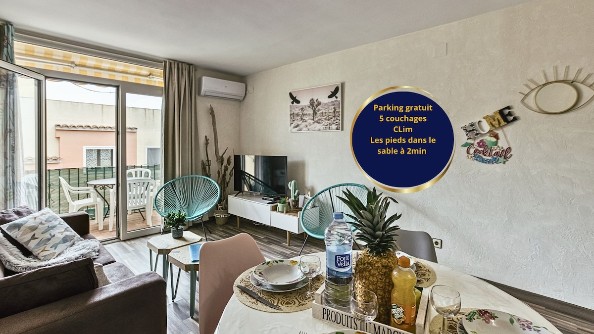 Lejlighed, der er blevet fuldstændig renoveret af en indretter! Beliggende i centrum af Empuriabrava, 400 meter fra stranden og tæt på butikker og restauranter. Fantastisk udsigt over kanalen og bjergene. Hvil garanteret... Den har 2 smukke soveværelser og 2 badeværelser. Den ligger på 1,5. etage i en lille bygning på 3,5 etager. Der er ingen elevator. Tv'et har franske kanaler og kan tilsluttes internettet. Lejligheden har 4G Wi-Fi. Der er mange gratis parkeringspladser foran bygningen og i omegnen.