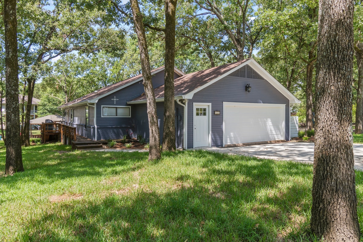 Tag til Serenity at Indian Harbor, et fredeligt hus ved søen med 3 senge og 2 badeværelser på Cedar Creek Lake, kun en time fra Dallas. Dette kæledyrsvenlige fristed passer godt til familier eller grupper og har et moderne design, et gourmetkøkken og en stor terrasse med grill og bålplads. Beliggende i en stille bugt er det den perfekte ferie med fantastisk udsigt over vandet. (Læs alle oplysninger, herunder søniveauer.)