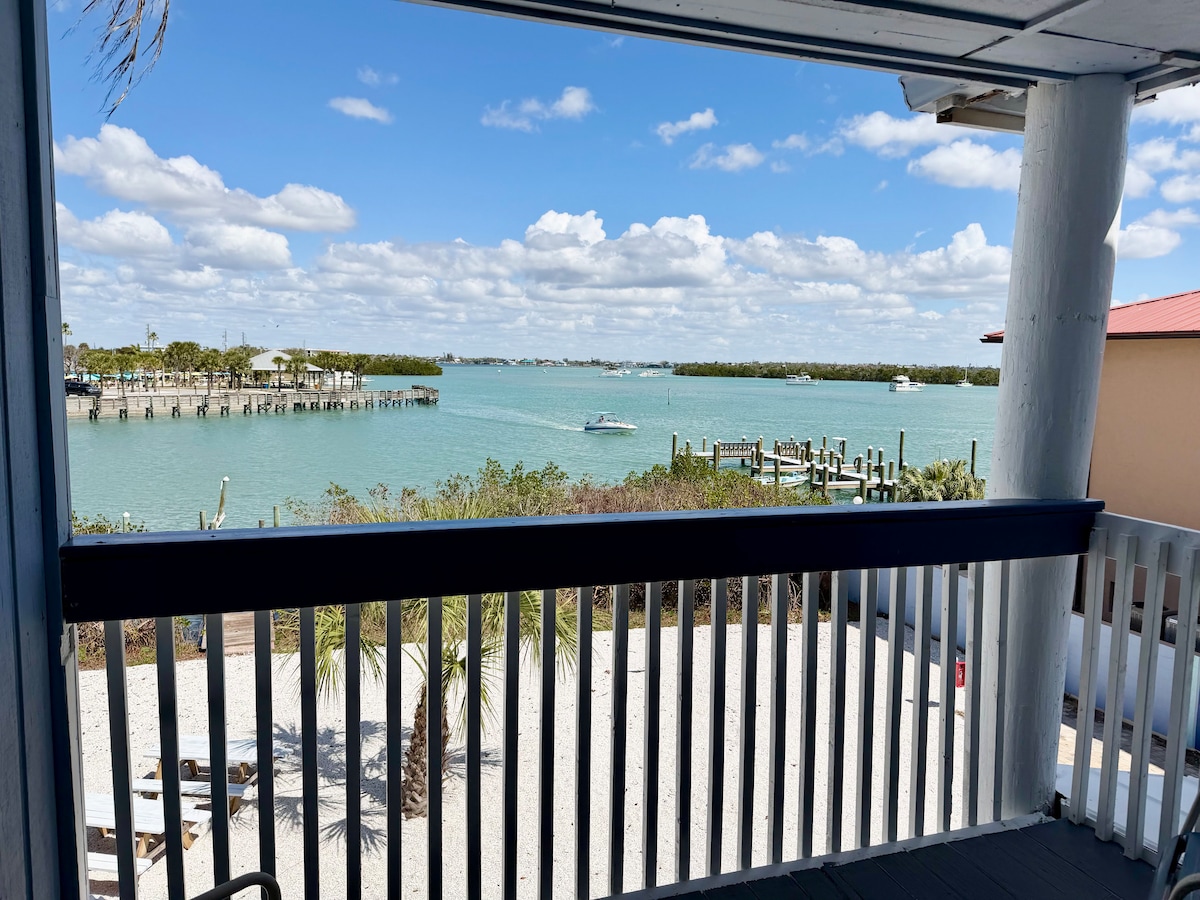 I hjertet af Manasota Key! Denne lejlighed har et komplet køkken, badeværelse med bruser, rummelig stue/spisestue med tv, soveværelse med tv, centralvarme/luft, vaskemaskine/tørretumbler, opvarmet pool, delvis udsigt over bugten, og på den anden side af gaden er vores private adgang til Englewood Beach! Gåafstand til fine restauranter (1 eksklusiv ved siden af) og alle typer aktiviteter! Gratis bådhavne ved reservation. (Ingen trailere tilladt) RABAT FOR UGENTLIGE INGEN KÆLEDYR: INGEN RYGNING: INGEN VAPING. Maks. 2 gæster.