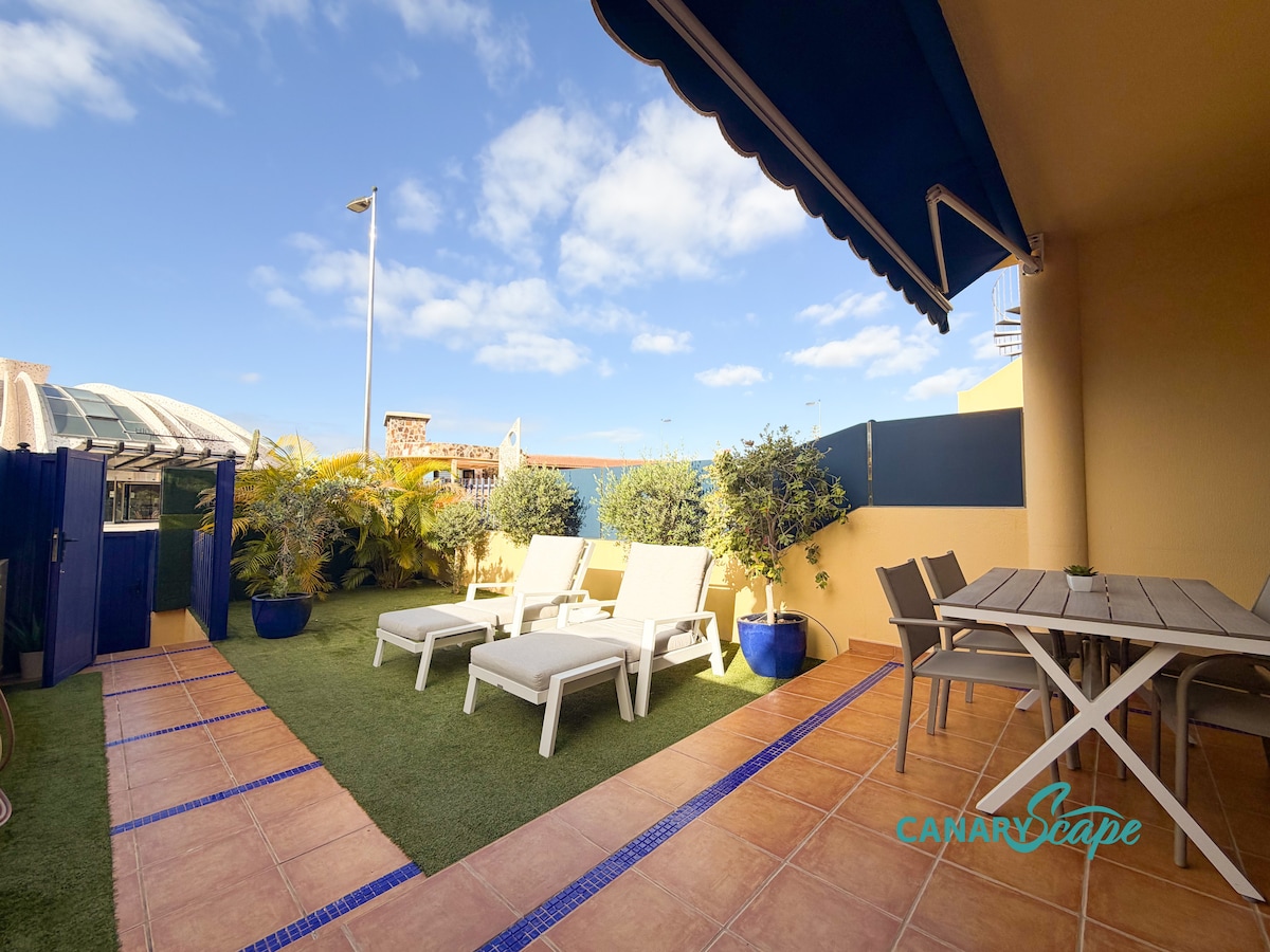 Denne bungalow er en unik perle i Playa del Inglés: fuldt renoveret, med moderne stil og stor privat terrasse på 60 m² med grill og chill-out område. Den separate indgang garanterer privatliv, og beliggenheden, kun 60 meter fra Yumbo og tæt på stranden, kombinerer fritid, hvile og komfort. Ideel til familier eller grupper, der leder efter en eksklusiv oplevelse med den autentiske charme, som det sydlige Gran Canaria byder på.