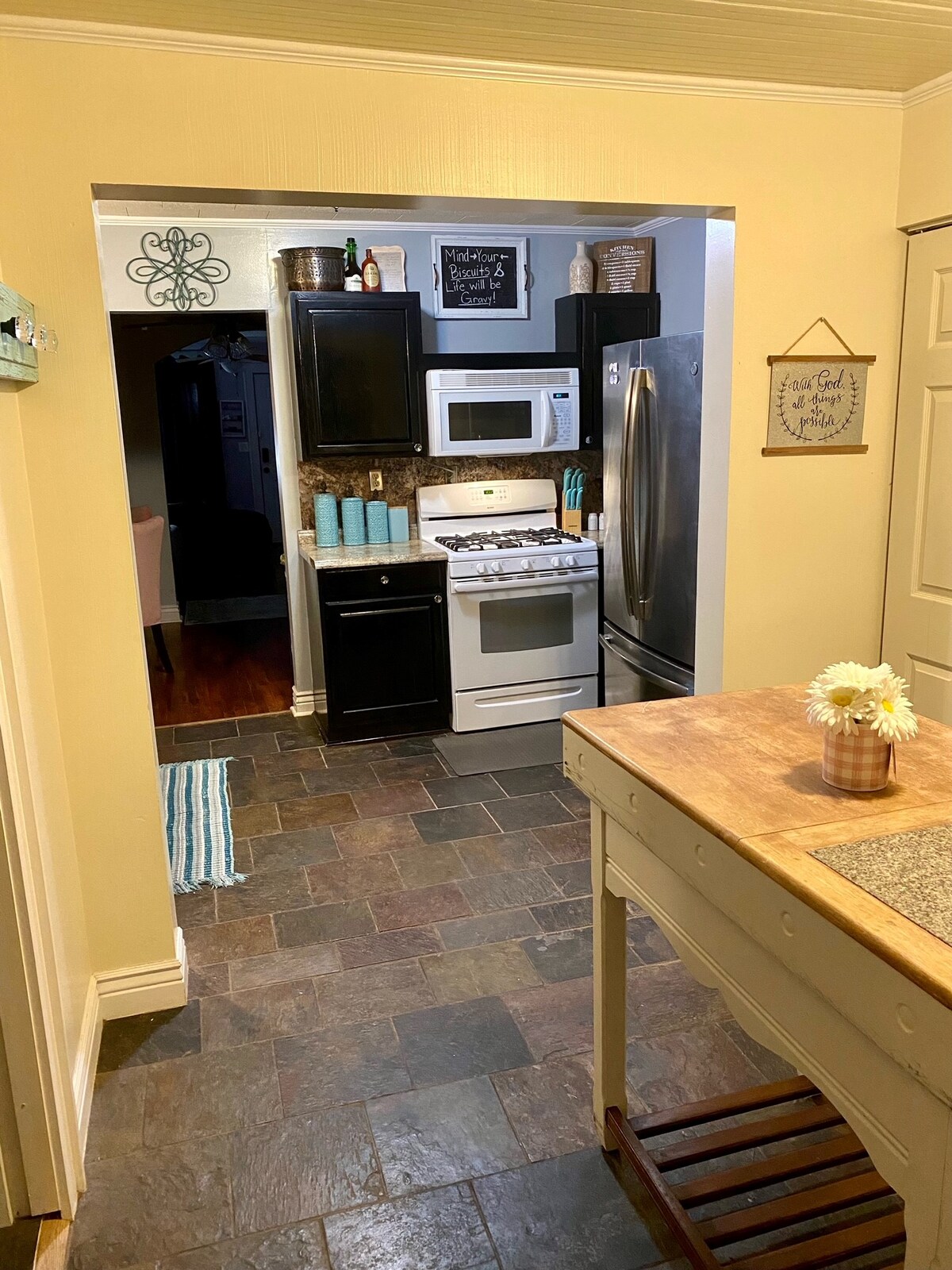 Dette charmerende, fredelige og centralt beliggende hjem med 2 soveværelser og 1 badeværelse, der er bygget i 1920, er perfekt til dem, der søger enkelhed. Den ligger kun få minutter fra downtown shopping og spisesteder, og den har et omhyggeligt renoveret køkken og badeværelse. Denne bolig tilbyder en blanding af stil, komfort og adskillige faciliteter. Start din dag med en kop kaffe på den overdækkede terrasse, eller slap af i gyngestolen på verandaen foran eller bagved! Hvis du kan lide små teams, lydhøre værter og et sødt ældre hjem med ekstra charme, så er du velkommen.