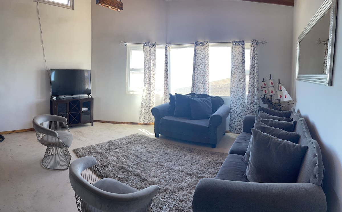 Spektakulært rum skabt til en behagelig og rolig hvile. Beliggende i et privat og meget sikkert område. Før du ankommer, kan du få den bedste udsigt over byen, vi er beliggende på en bakke. Uafhængig bolig med en privat terrasse, hvor du kan nyde smukke solnedgange, smart-tv (Netflix og YouTube), sovesofa og dobbeltseng, plads til grill og til at have en dejlig og rolig tid med din familie og kæledyr! Hvis du har brug for en luftmadras, skal du give os besked