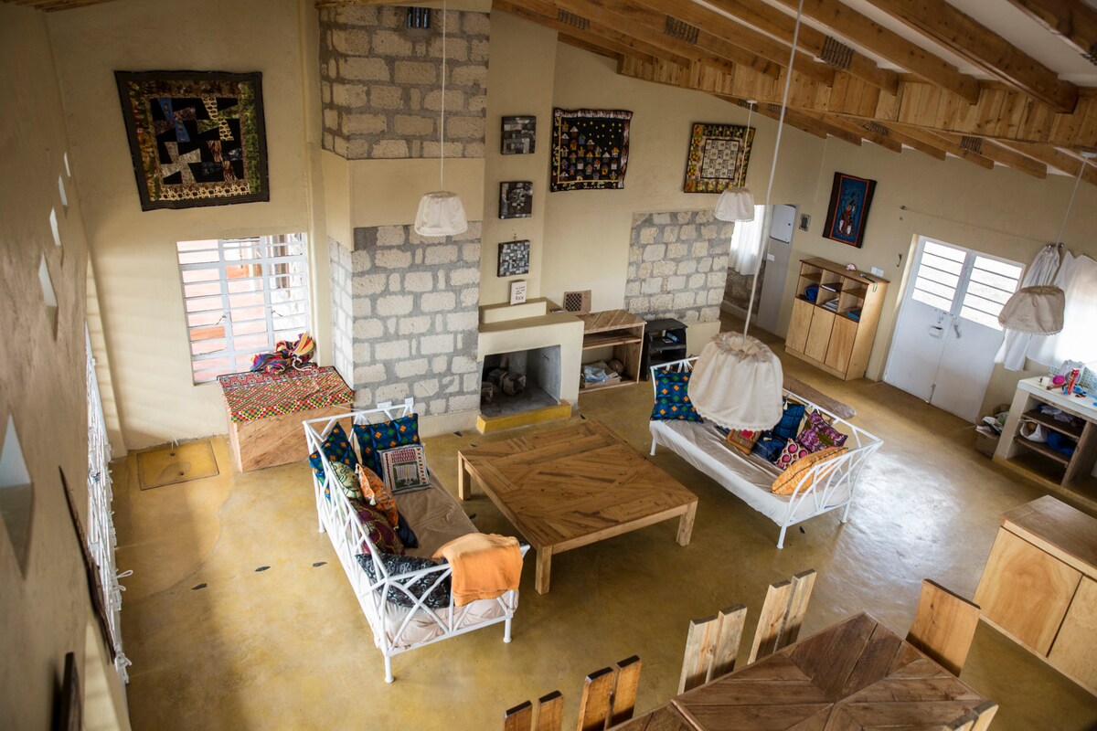 Nyd de dejlige omgivelser i denne romantiske bolig i naturen. Pendo-huset er et containerhus med et soveværelse, der ligger i et roligt hjørne af et lille samfund kaldet Lucky Base. Der er en smuk blomsterhave, en blød græsplæne og en lille pool, der snart er klar, så du kan nyde den under den blå himmel i Kajiado. En perfekt udflugt for par, læsere og naturelskere, især fuglekiggere og blomsterhandlere.