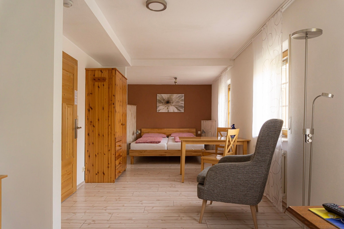 I hjemmet "Little Earth" kan du ankomme og føle dig godt tilpas. Jeg har skabt et sted her, hvor man bare kan "være". Bermersbach, den magiske landsby i himlen, byder på vidunderlige udsigter, vidunderlige vandrestier, magiske skove, mystiske klipper og fortryllede brønde. Her kan du komme helt til dig selv. Lejligheden ligger i stueetagen og er meget stille. Hvis du ønsker det, tilbyder jeg vegetarisk/vegansk grød til morgenmad.