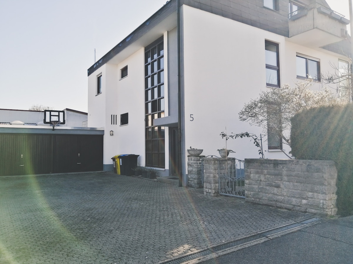 Nyd vores stilfulde kælderloft, kun 3 minutter fra S-Bahn. (20 minutter til Stuttgart) Loftet imponerer med sin rummelige atmosfære og store vinduer, der lukker masser af naturligt lys ind. Slap af på den komfortable sofa, spil et spil billard, eller nyd den friske luft på terrassen. Det er det perfekte sted at trække sig tilbage, læse en bog eller bare slappe af. Vi ser frem til at byde dig velkommen her snart!