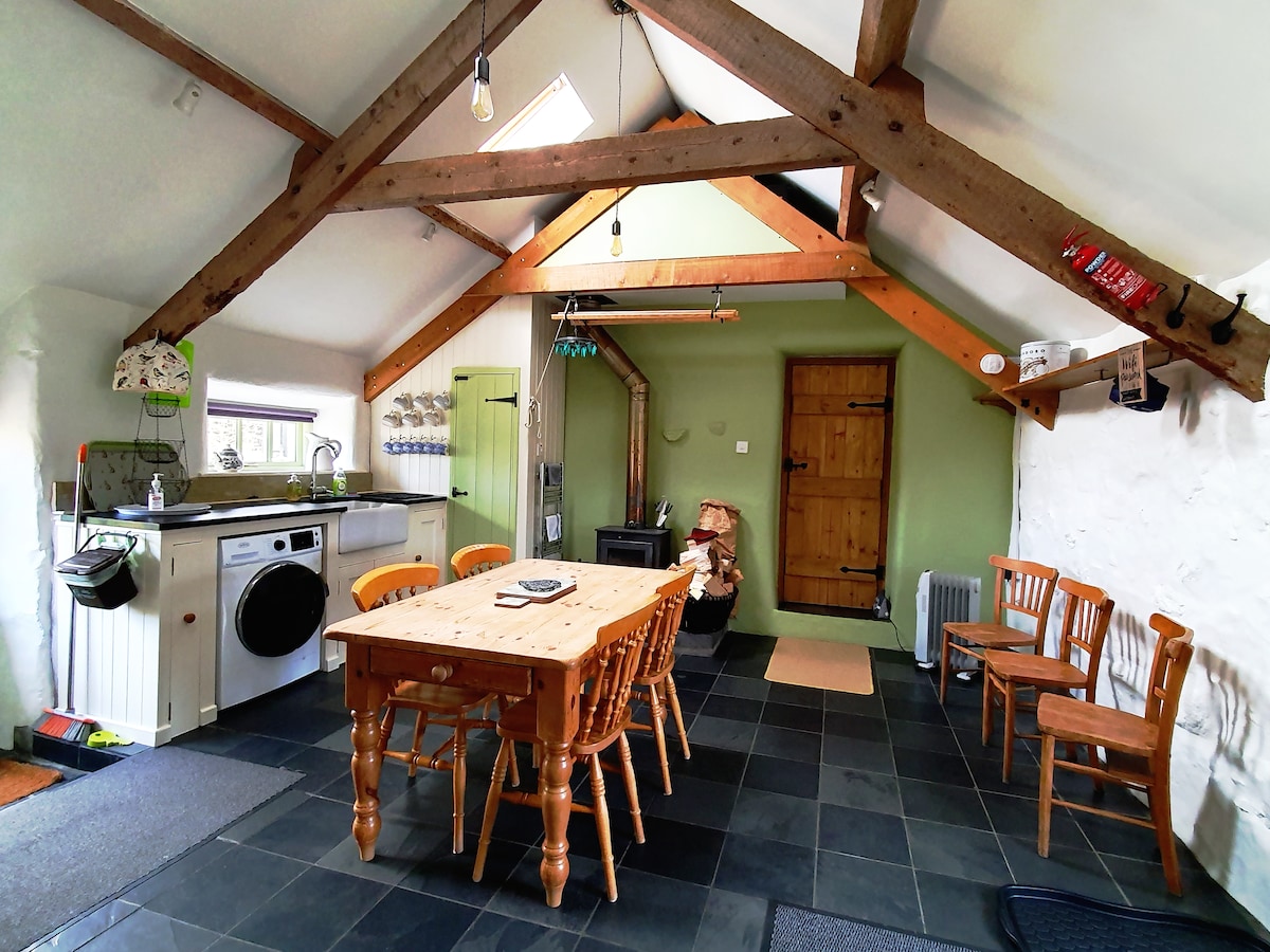 Hyggelig ladekonvertering i N Wales med bjælkebrænder