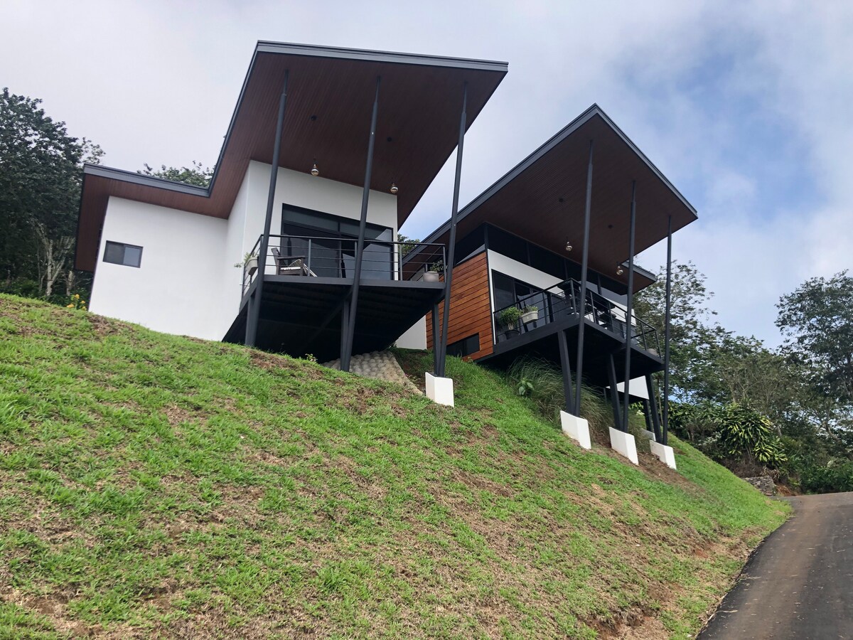 New, fully furnished house with a great view of Volcanoes and Valley! Located in a quiet community very close to Atenas downtown (4.5Km). Large master room w/ King size bed plus one guest room. Two full bathrooms. Contemporary design and decor. Large, integrated kitchen with granite countertops and all appliances. Very spacious social area with large windows and mosquitoes screens. Big terrace with deck and built-in jacuzzi. Great view all over. Service include gardener and maid (once a week).