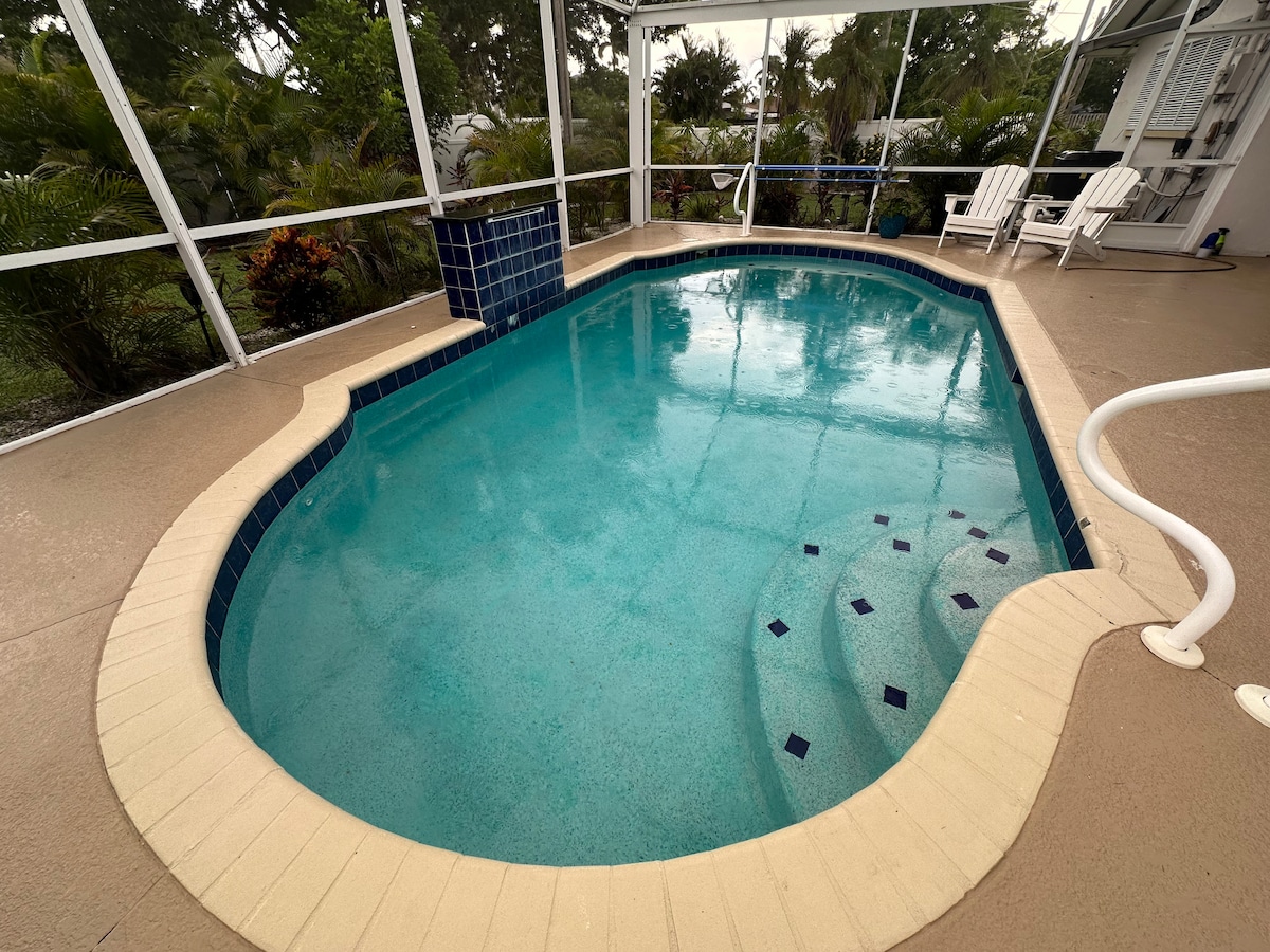 Slap af i dit eget stykke SWFL-paradis! Turtle Cove er et hyggeligt, røgfrit, strandnært fristed beliggende mellem Fort Myers og Estero - perfekt til familier, par eller fjernarbejdere, der ønsker at slappe af og få ny energi. Start din morgen med kaffe på den rolige gårdhave, slap af ved poolen, og slap af i boblebadet under en smuk solnedgang. Med adgang til pickleballbaner, fiskedamme, en legeplads og en hundepark er der noget for enhver smag.