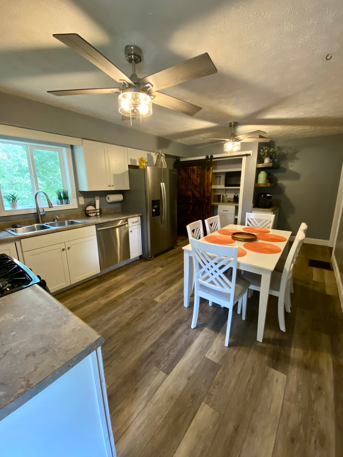 Moderne 3 soveværelser 2 badeværelser på 11,5 hektar ca. 20 miles fra Red River Gorge. Hele huset er blevet renoveret. Starlink Internet, elektrisk pejs, smart-tv i alle soveværelser/stue, pinballmaskine og loftsventilatorer i alle soveværelser/stue. Bålplads med gynge på verandaen, stole, bænk til mad, picnicbord og lyskæder til underholdning. Huset ligger på 11,5 hektar, gæsterne er velkomne til at gå rundt i ejendommen. Stor wrap rundt om indkørslen for nem ankomst/afrejse