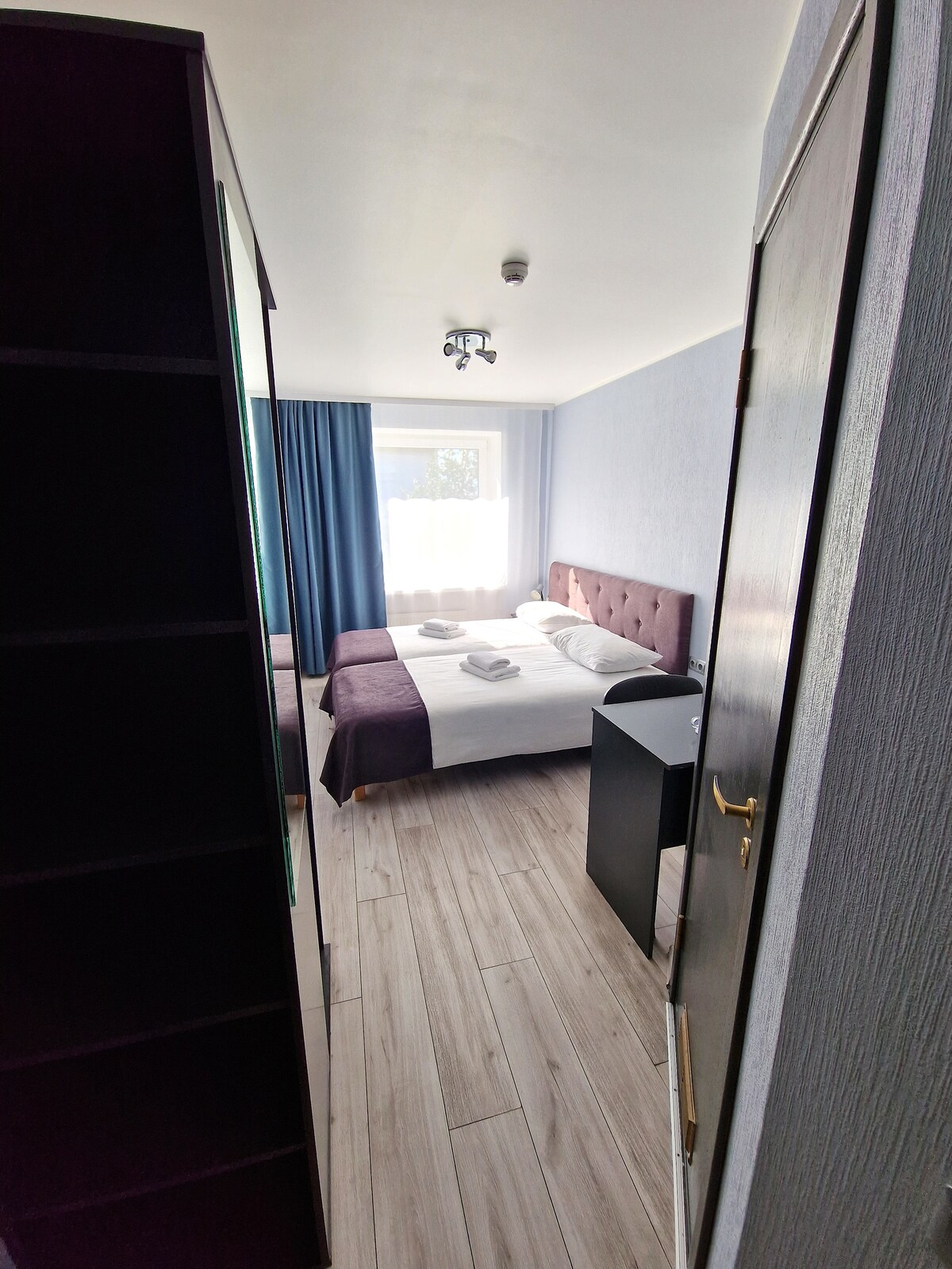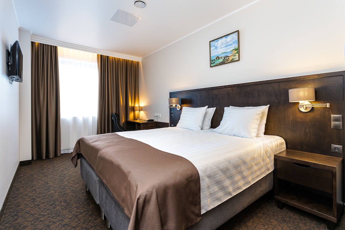 Dobbeltværelset er 20 kvadratmeter. En behagelig 180 cm bred seng sikrer en god nats søvn. Værelset har et privat badeværelse med bruser og toilet. For nemheds skyld er der et lille køleskab, te- og kaffefaciliteter. Til arbejde tilbyder rummet et stort skrivebord og en pålidelig wi-fi-forbindelse. Du kan se dine yndlingsprogrammer via GO3 eller Netflix. Pärnu strandpromenade ligger kun 5 minutters gang væk, og byens centrum ligger inden for 15 minutters gang.