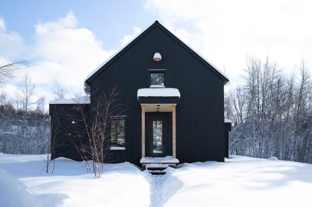 This newly built house is located on our 90 acre property. It is surrounded by an orchard, a vineyard and forest. The quaint and natural setting is perfect for couples, solo travellers or families. Cross country skiing, running and hiking can be practiced on the property. Bromont and Sutton downhill ski slopes are a 35 minutes drive away. Jay Peak, Vermont is 1h15 away by car. The surrounding country roads provide for wonderful bike rides.