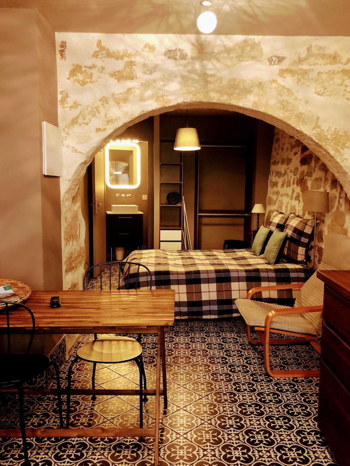 Pignan, der er klassificeret som historisk monument, er en middelalderlandsby nær Montpellier. Du bor i en gammel fåreindhegning fra det 18. århundrede med smukke hvælvinger. Væggene er bygget med kalk og Pignan-sten. Det er et stort værelse på ca. 20 m2, der ideelt set er designet til 2 personer. Denne atypiske ejendom ligger i stueetagen i vores hus i en rolig gågade i byens centrum og tæt på små butikker.