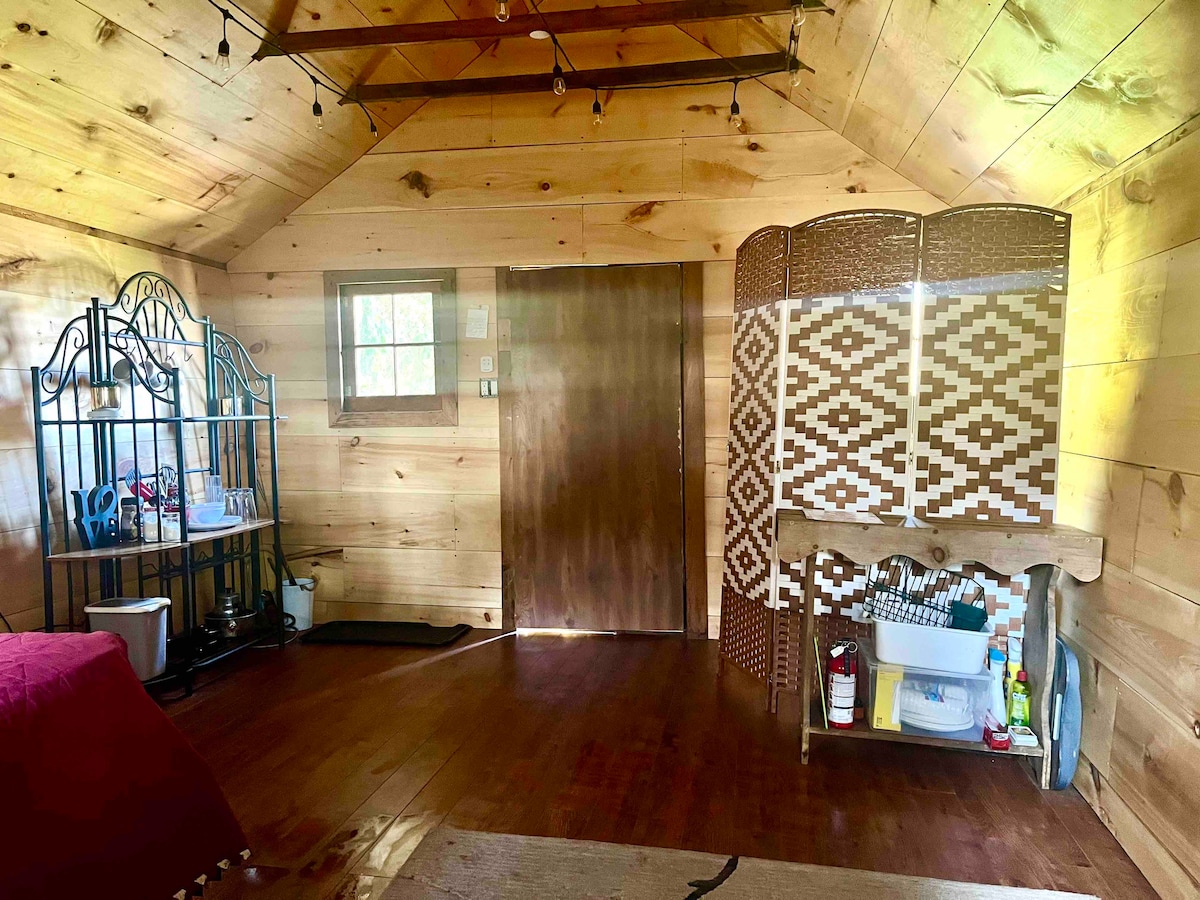 LUKKET indtil foråret Køjesengen har en fantastisk udsigt over solopgangen. Det er et roligt landligt område (bemærk, at det er en GRUSVEJ). Velegnet til par, solo-eventyrere, jægere og en, der ønsker at være uden for byen. Bunkien ligger ca. 30 fod bag vores hjem. Af allergiske årsager og af hensyn til dyrenes sikkerhed tillader vi ikke kæledyr. Er måske ikke egnet til personer med nedsat mobilitet (lille bakke og trapper). Bunkien har varme og aircondition!