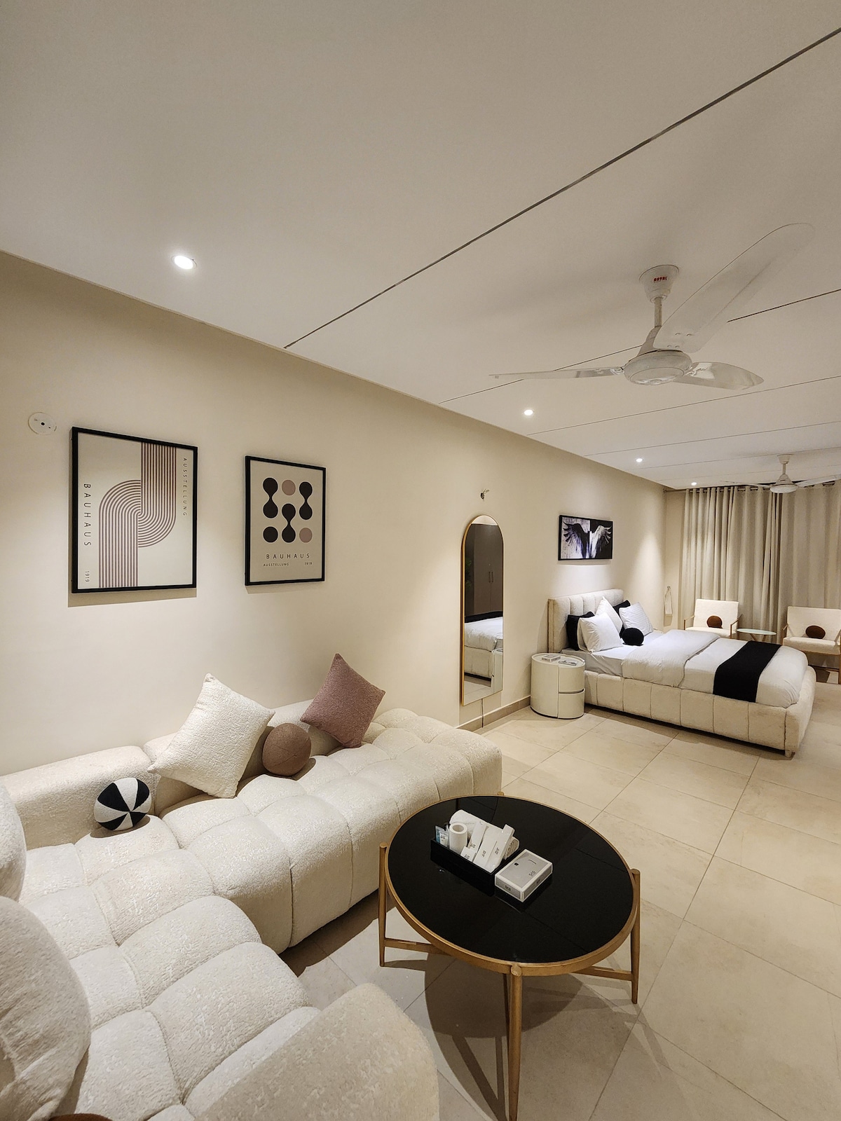 Velkommen til Daró – en boutique, designfremad 1-sengs lejlighed i hjertet af Zameen Aurum, Gulberg III. Dette sted er omhyggeligt udformet med bløde toner, moderne møbler og en rolig hotelagtig atmosfære og tilbyder en privat balkon, en stilfuld lounge med et 55" LED-tv, et fuldt udstyret tekøkken, hurtig wi-fi, frisk sengetøj og varmt vand døgnet rundt. Ideel til gifte par, forretningsrejsende, weekendophold og længerevarende ophold, hvor der søges komfort, bekvemmelighed og en virkelig forhøjet oplevelse i Lahore. 🌙✨