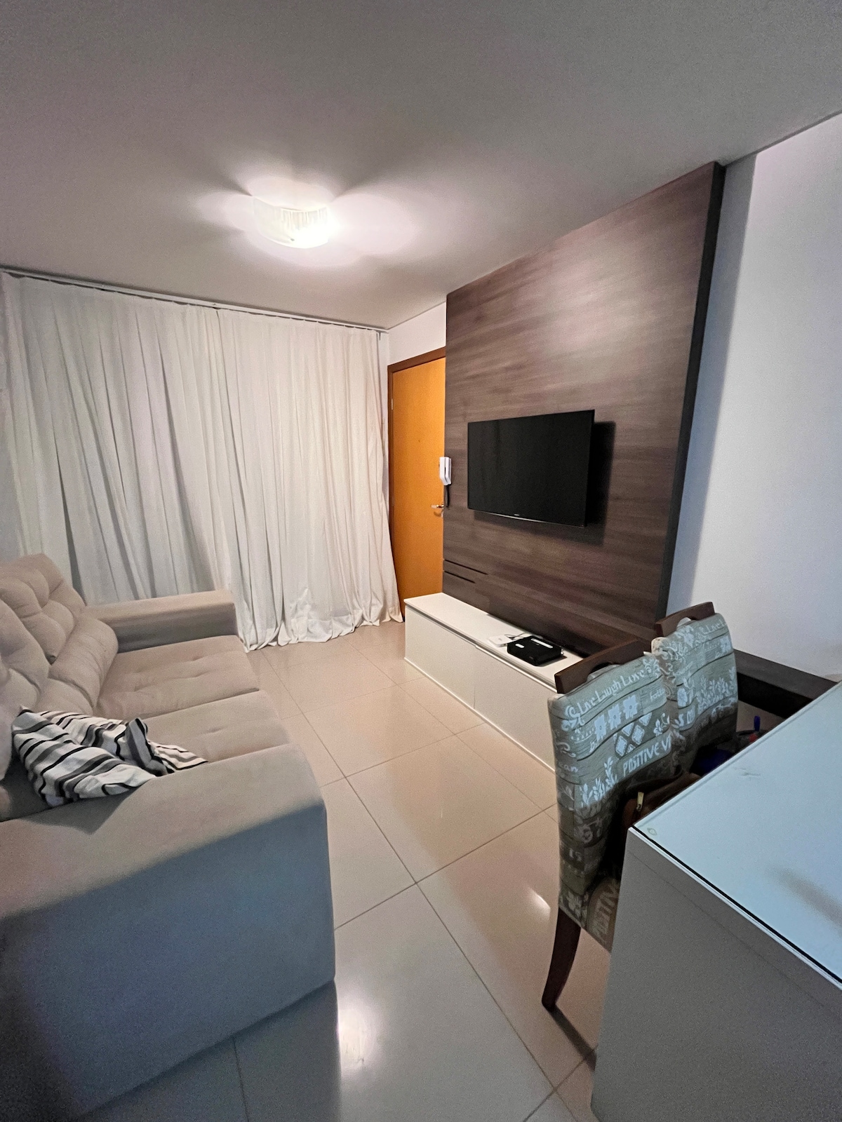 Beliggende i nærheden af centrum, 5 minutter fra Mueller-købscenteret, i et roligt og skovklædt kvarter, med barer, restauranter og nem adgang til BR 101, er denne lejlighed komplet med et 43" smart-tv, split aircondition, queensize-seng, vaskemaskine, balkon, gasbruser, meget veludstyret køkken og tv-rum. Stedet har også 1 parkeringsplads uden ekstra omkostninger, en swimmingpool, fitnesscenter, festlokale, legetøjsbibliotek og nærbutik. Alt dette i en charmerende og elegant bygning!