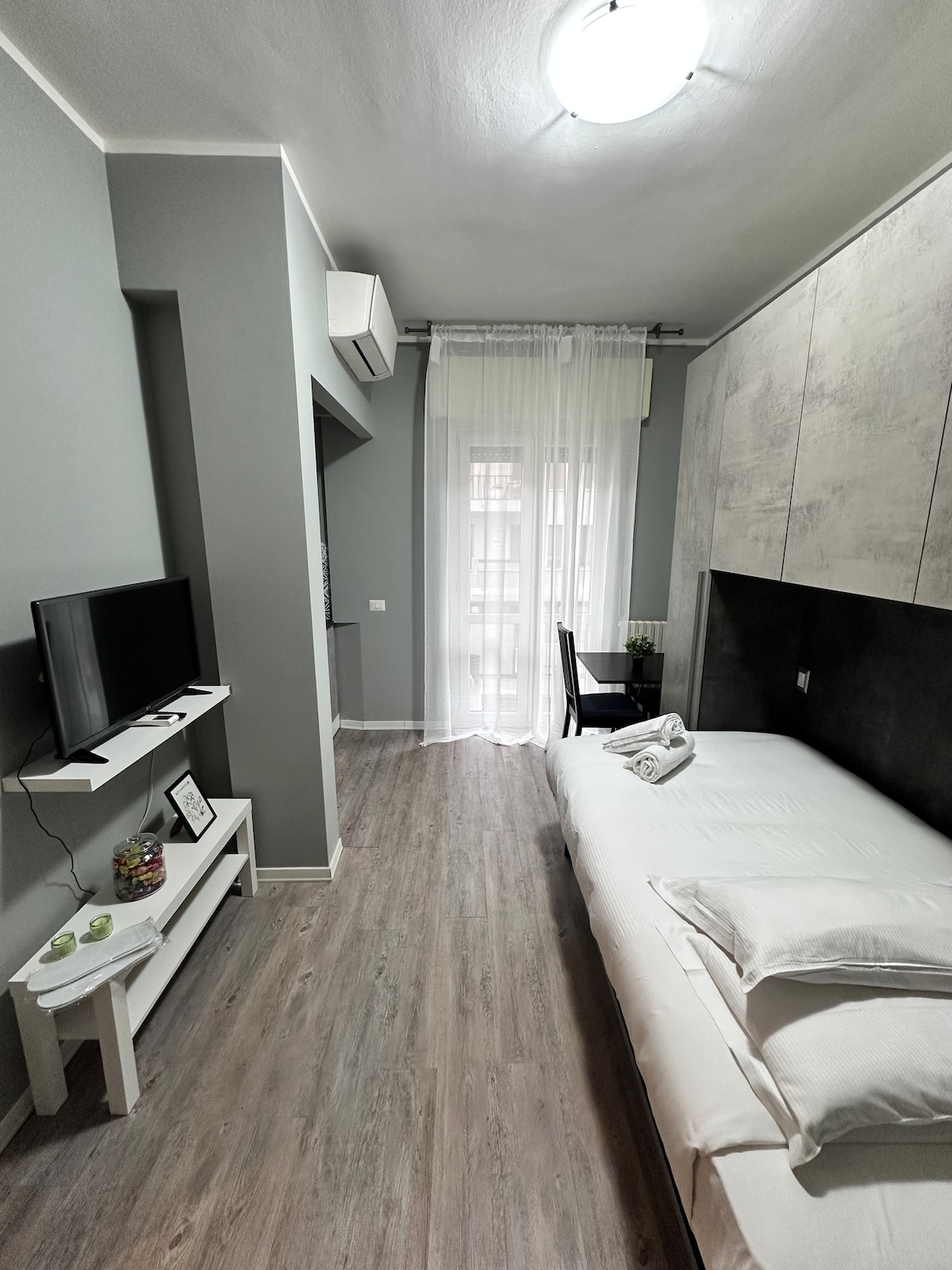 Meget centralt og strategisk beliggende rum bestående af et dobbelt soveværelse, afslapningsområde, komplet badeværelse og dejlig terrasse. Den har ikke et komplet køkken, men et lille køleskab, mikrobølgeovn, kedel, Nespresso og morgenmad. Et par skridt fra hovedbanegården, og der er forbindelse til den røde metro, sporvogne og busser, men det ligger også 15 minutters gang fra Duomo. Tjenester af alle slags, restauranter, butikker gør dette multietniske område livligt og dynamisk, alt sammen skal udforskes.