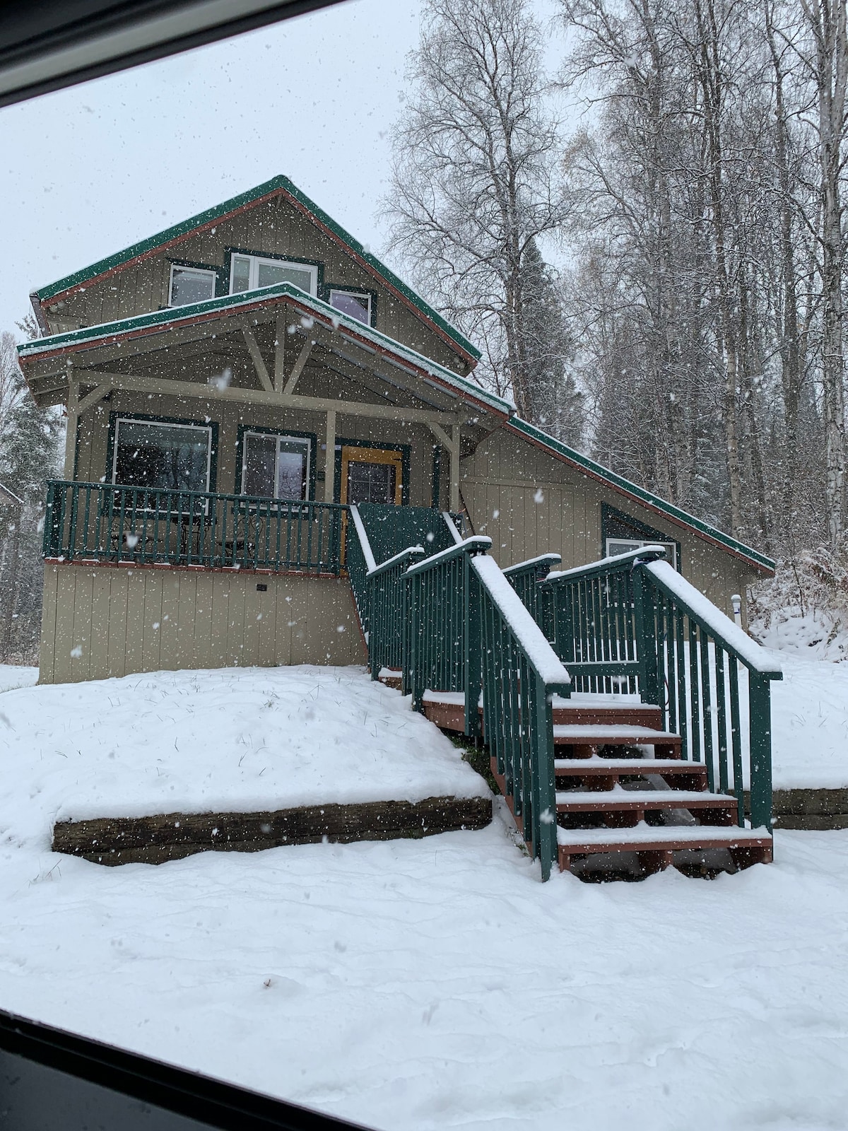 Tag på ferie til dit eget private feriested i Alaska. Velkommen til vores rummelige og stilfulde 3-værelses + loftssuite, 2,5-badeværelses hjem — den perfekte ferie for op til 8 gæster. Denne fredfyldte oase ligger i et roligt kvarter omgivet af skov og kombinerer komfort, underholdning og bekvemmelighed i én smuk pakke. 📍 Beliggenhed: 20 minutter fra Fairbanks Internationale Lufthavn 15-20 minutter fra Fairbanks centrum Afskåret, men tilgængelig – nyd privatliv og ægte Alaska-atmosfære.