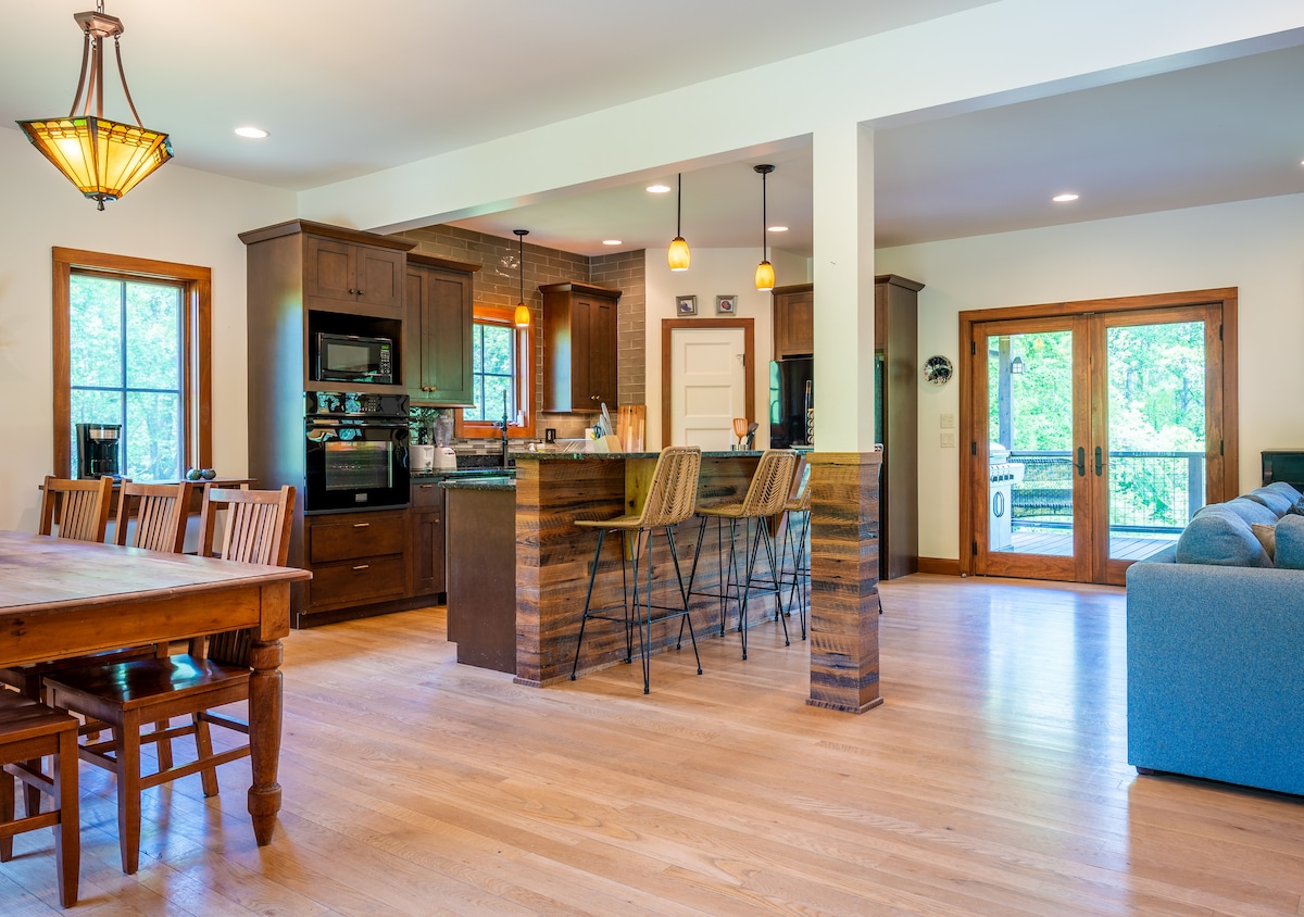Asheville kalder dig tilbage – vær en del af comebacket Asheville er åben og mere levende, modstandsdygtig og beslutsom end nogensinde — for nylig udnævnt til en top 2025 destination af Forbes Travel Guide og The New York Times. Vores luksuriøse, romantiske og moderne bjerghjem ligger i Fairview, NC. Kun omkring 14 miles (ca. 22 minutter) kørsel ind til downtown Asheville. Omgivet af lyden af naturen, komplet med udendørs privat spabad + gasildsted + og alle bjergboernes bekvemmeligheder.
