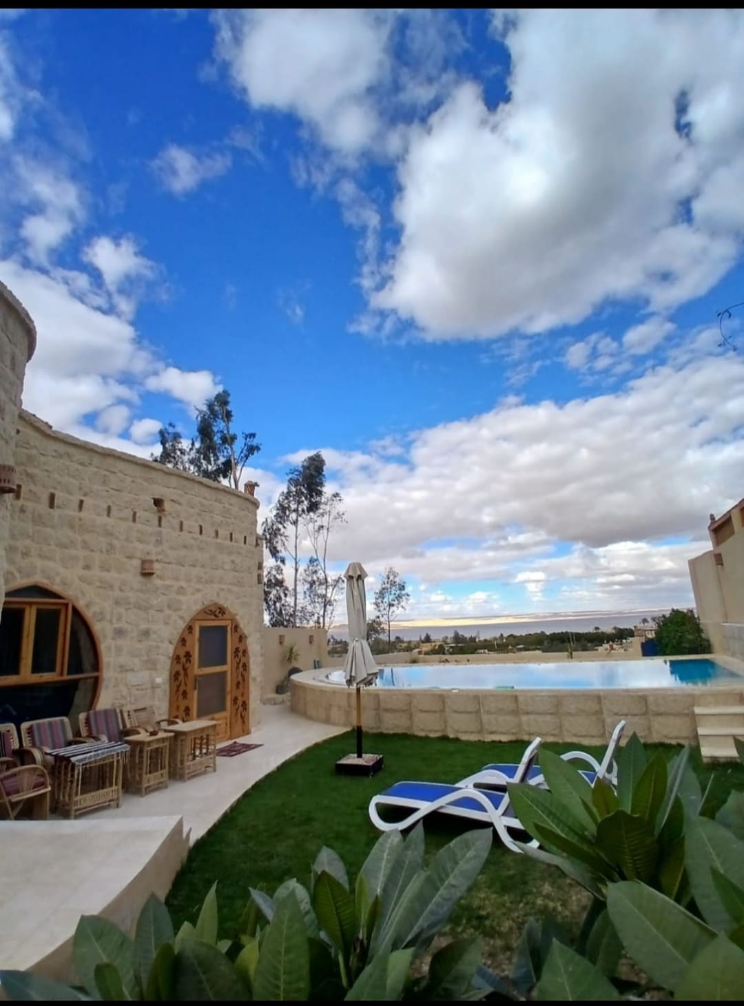 En unikt designet privat bolig i Tunis Village med udsigt over den naturskønne Qarun-sø. Boligen omfatter 1. sal i en smuk villa med en smuk have og udendørs pool, med 2 store soveværelser, et køkken, stue/spisestue, øverste terrasse og et komplet badeværelse.