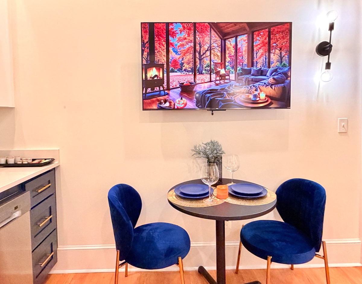 Step into this uniquely designed industrial loft with timeless character. Fully equipped kitchen, spacious glass-paneled bedroom with king bed and artistic accent wall, and stunning living area with high ceilings, rich hardwood floors, and dramatic black decorative doors. Perfect for couples or solo travelers. Walk to College Hill, Rhode Island State House, Providence Place Mall, and riverfront dining. Just 1 mile to the train and 15 minutes to the airport.