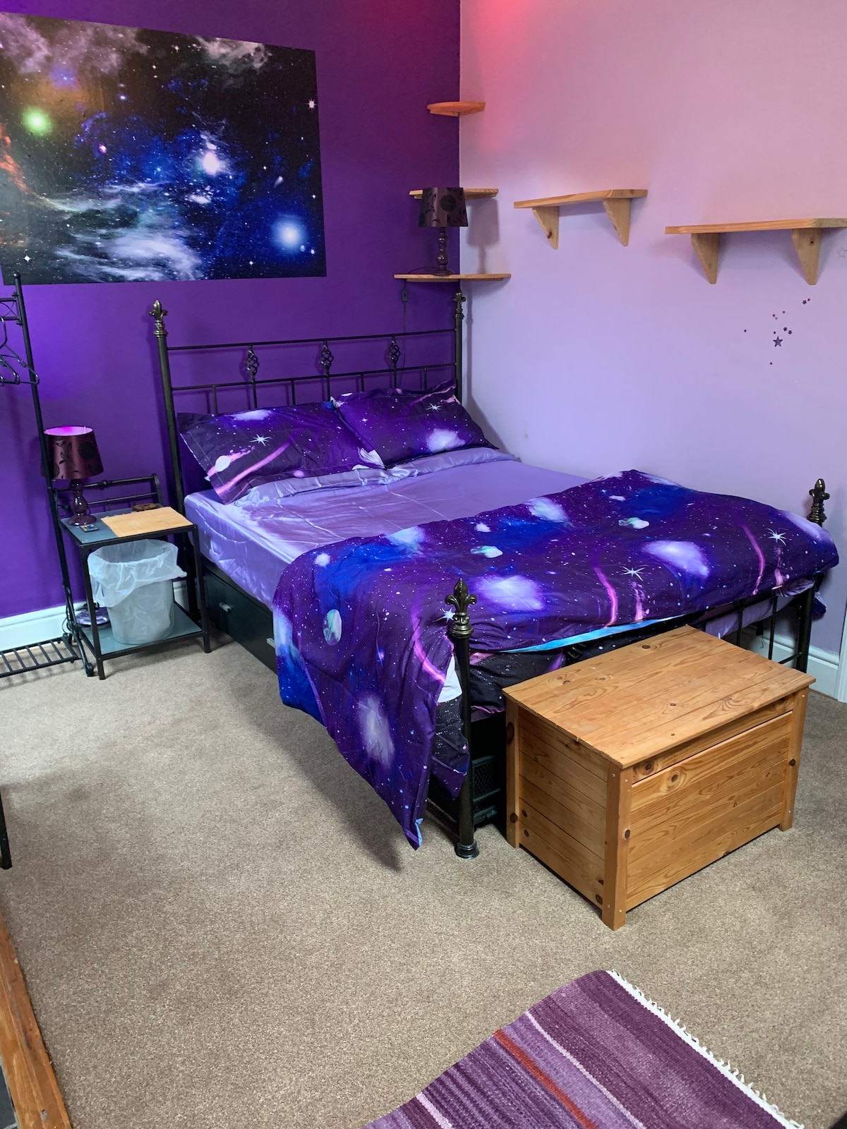 VELKOMMEN TIL FLYDENDE HOMESTAYS Et yndigt kæledyrsvenligt, romantisk gemmested i hjertet af Manchester. Centralvarme og brændeovn. Skævt interiør inspireret af Havana fra 1950'erne. Showpiece er en ærlig bar med vin, spiritus og cigarer. Køkken udstyret til madlavning med lidt let morgenmad (kaffe/te/korn/mælk/mælk/ OJ). Bruser/vask/toilet. Dobbeltseng og enkeltsofa. Soveværelset har udsigt over en attraktiv plantefyldt terrasse, hvor du kan nyde byen, mens det forbliver isoleret fra omverdenen.
