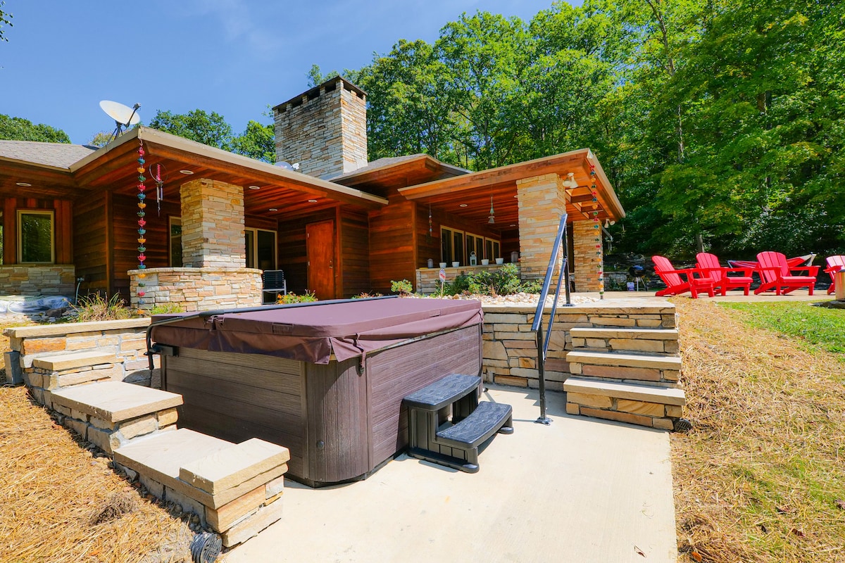 Welcome to your mountain getaway— minutes away from Fallingwater, Ohiopyle State Park, and Nemacolin! Kick back and relax in this newly updated A-frame with a wood-burning fireplace, full kitchen, and spacious outdoor deck and fire-pit! You’ll be surrounded by nature with trees, ferns, and a pristine stream. Enjoy the best of both worlds with a cozy location in the woods that’s near hiking and biking trails, Youghiogheny River, Kentuck Knob, Nemacolin Casino, and Fort Necessity Battlefield.