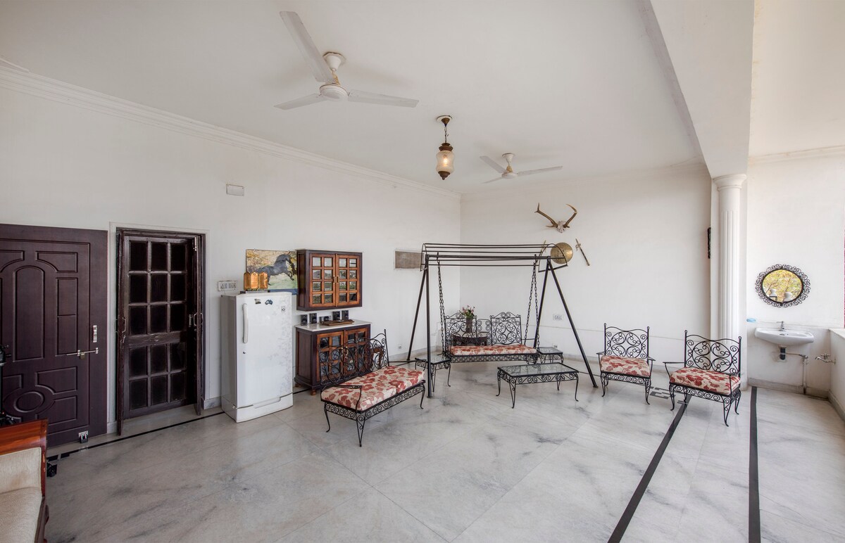Hjem for en tredjegenerations hærsofficer, vi tror simpelthen på at opretholde vores tradition til dens største værdi. Bungalowen har 5 værelser, hvor 2 værelser også udgør en etværelseslejlighed, hvis det er nødvendigt. Bungalowen ligger i fredelige og rolige omgivelser i et fredeligt område med klassisk Aravalli-bjergudsigt. Den rummelige stue med pejs og smukt buet højt loft vil føre dig tilbage til det 18. århundredes vintagehær-bungalow.