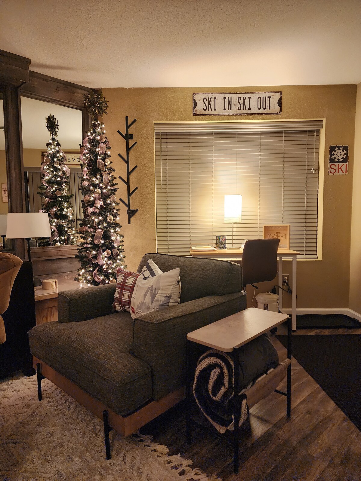 Slap af i denne lejlighed med et soveværelse beliggende i naturlige skovklædte omgivelser på Nemacolin Resort-ejendommen. Denne lejlighed har et soveværelse med queensize-dobbeltseng, et stort nyrenoveret badeværelse "en suite", et familieværelse med en udtrækssofa, tv og en elektrisk pejs. Spiseområdet har plads til fire personer, og tekøkkenet har køleskab og mikrobølgeovn. Vaskemaskine og tørretumbler er også inkluderet sammen med gratis Wi-Fi. Træd ud på den skovklædte bagterrasse og nyd freden og roen.