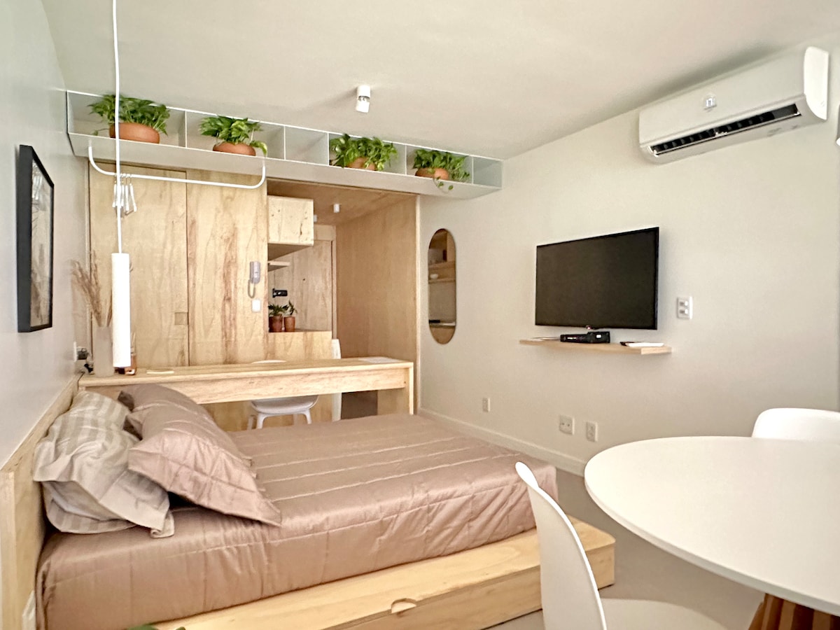 Dette containerhus er designet til at sikre komfort, praktiskhed og en dyb forbindelse til det naturlige miljø. Perfekt til par, der søger en udendørs ferie. Den ligger kun 15 minutter fra JK-broen og 25 km fra pilotplanen, der tilbyder nem adgang til byen uden at opgive roen. Med en hyggelig veranda og integrerede rum med udsigt over den bevarede vegetation finder du den ideelle balance mellem afslapning og natur. Velkommen